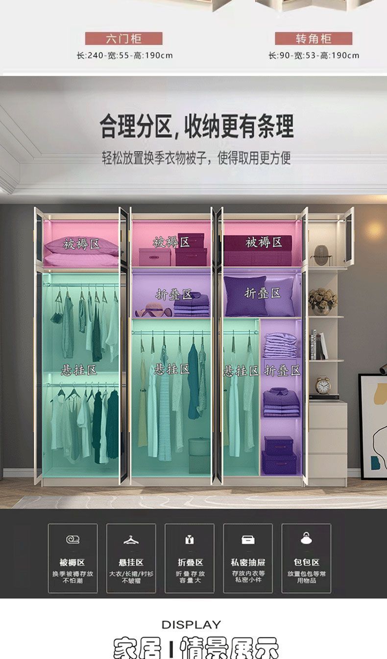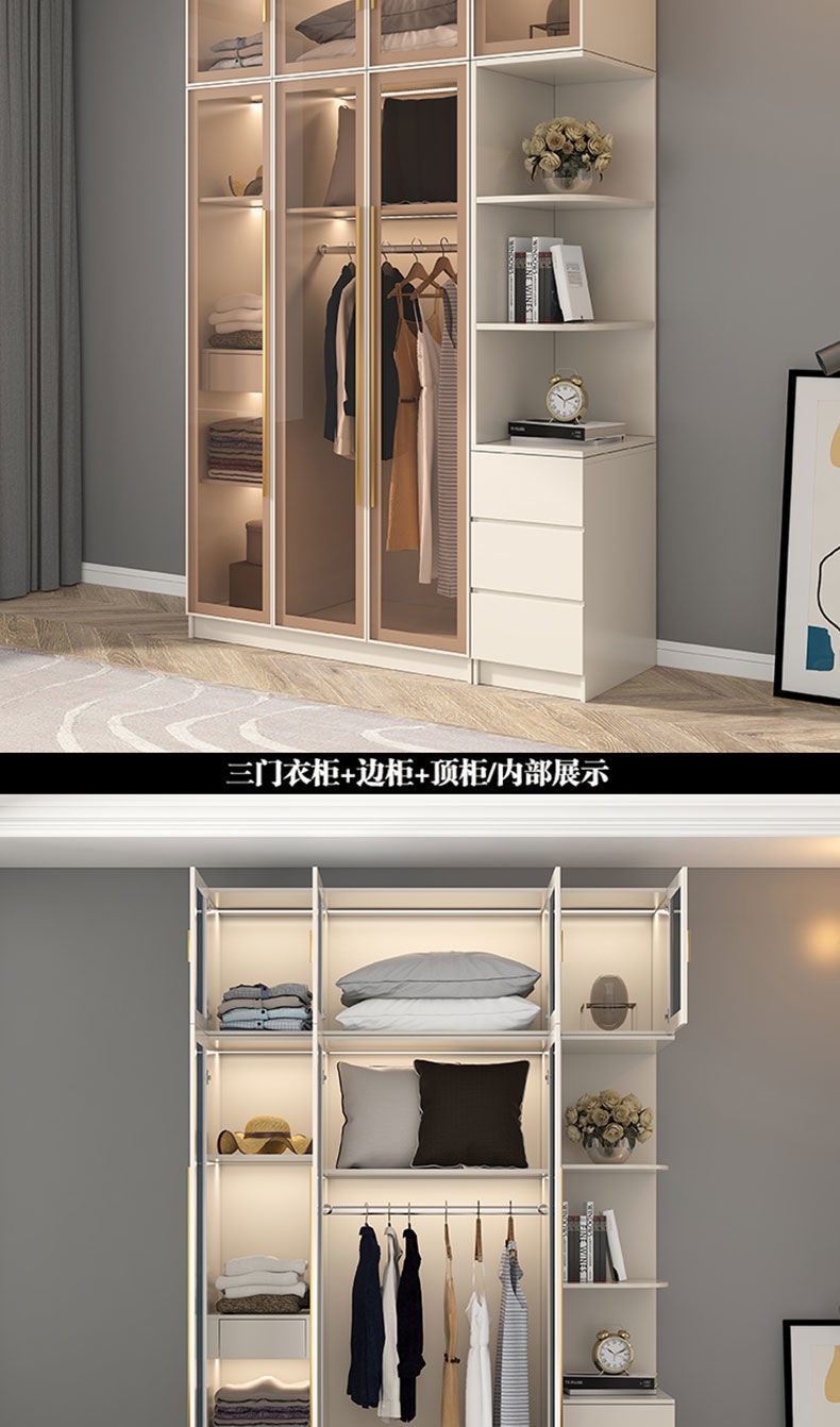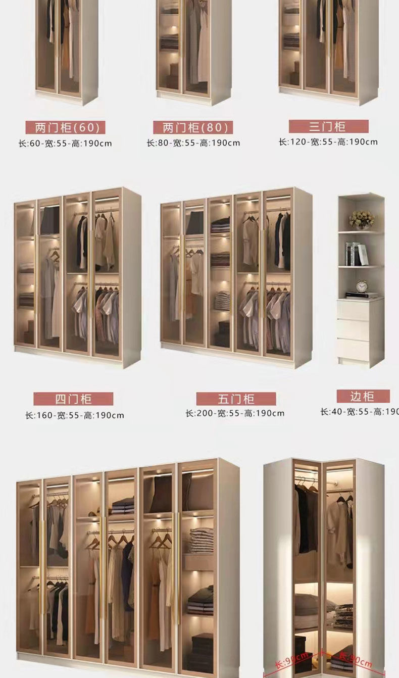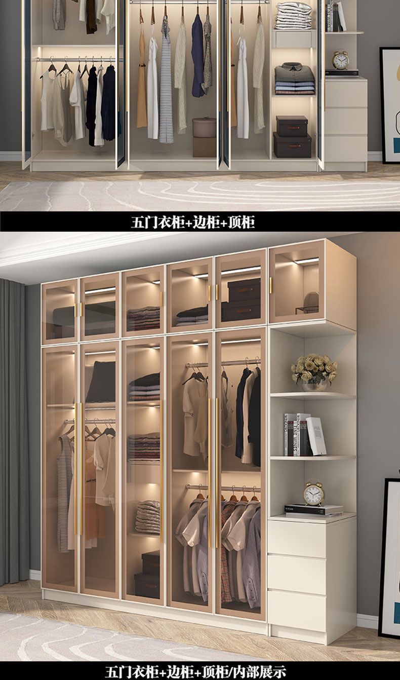 옷장 침실 투명 유리 도어 현대적인 단순하고 가벼운 럭셔리 드레싱 테이블 인터넷 연예인 오픈 옷장 대형 옷장