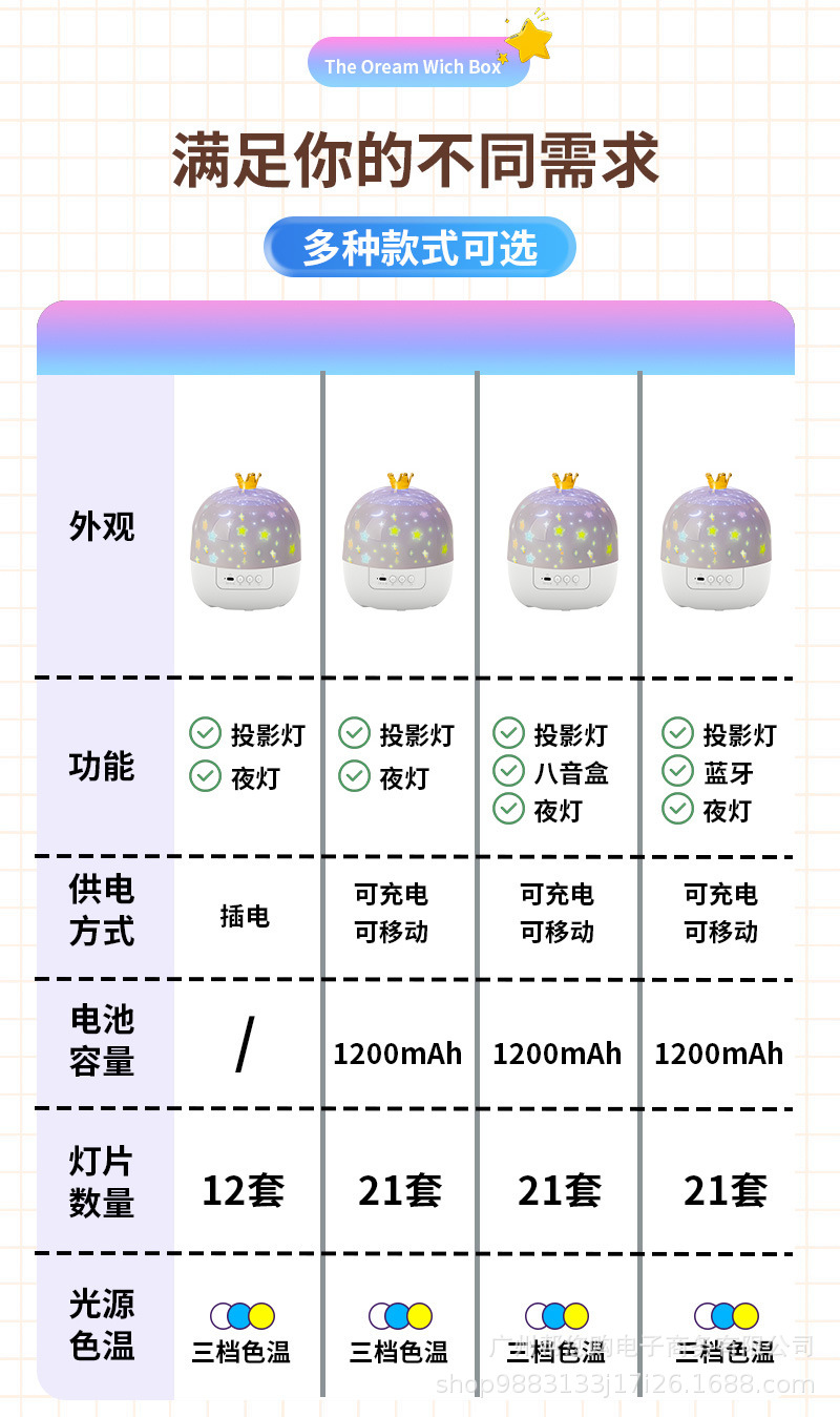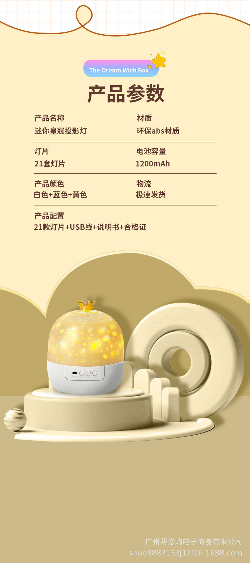 • 크라운 프로젝터 램프 - 충전식 음악 - 필름 21세트