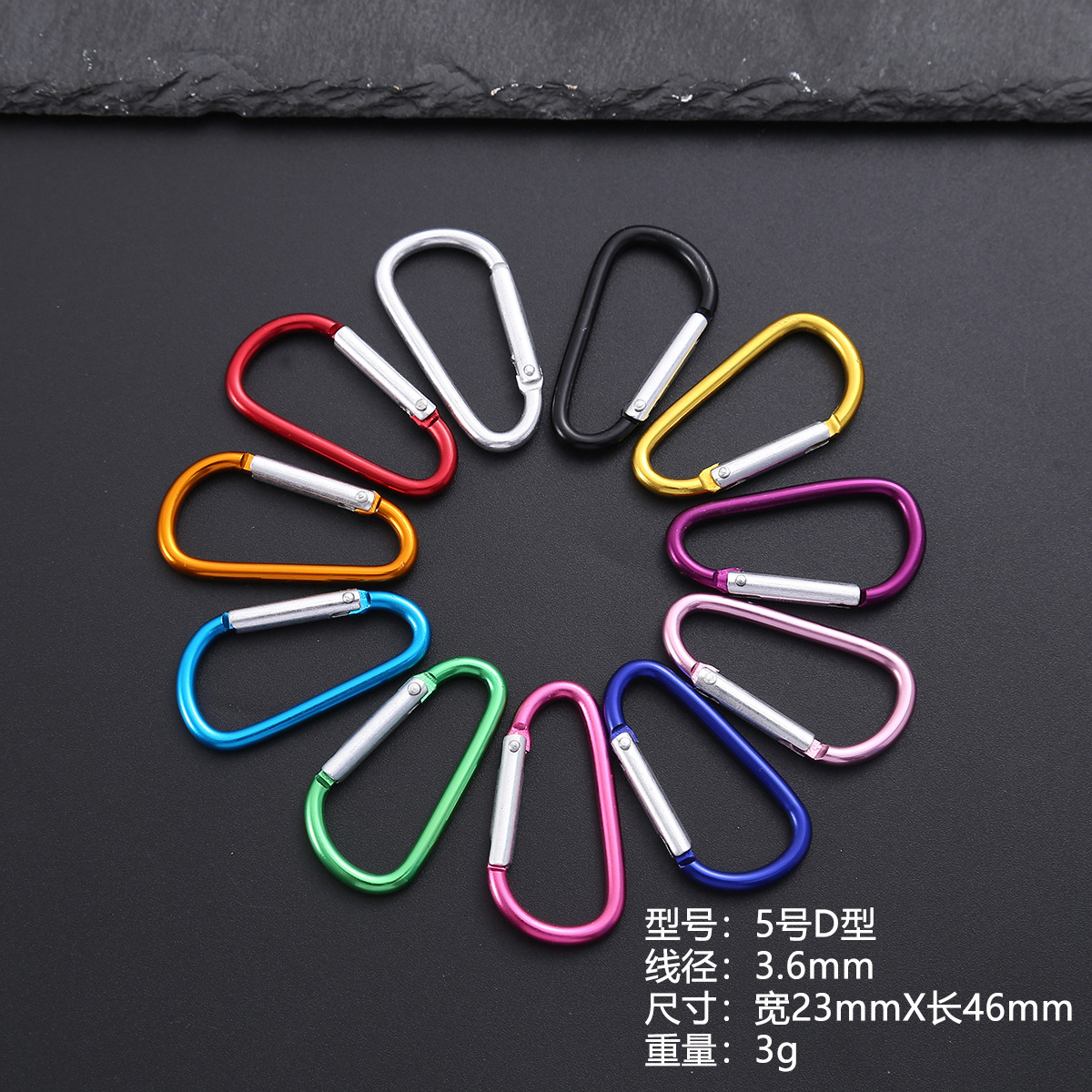 5 색 알루미늄 합금 카라비너 배낭 물병 퀵 릴리스 버클 다기능 D 자형 후크 야외 스프링 등산 후크