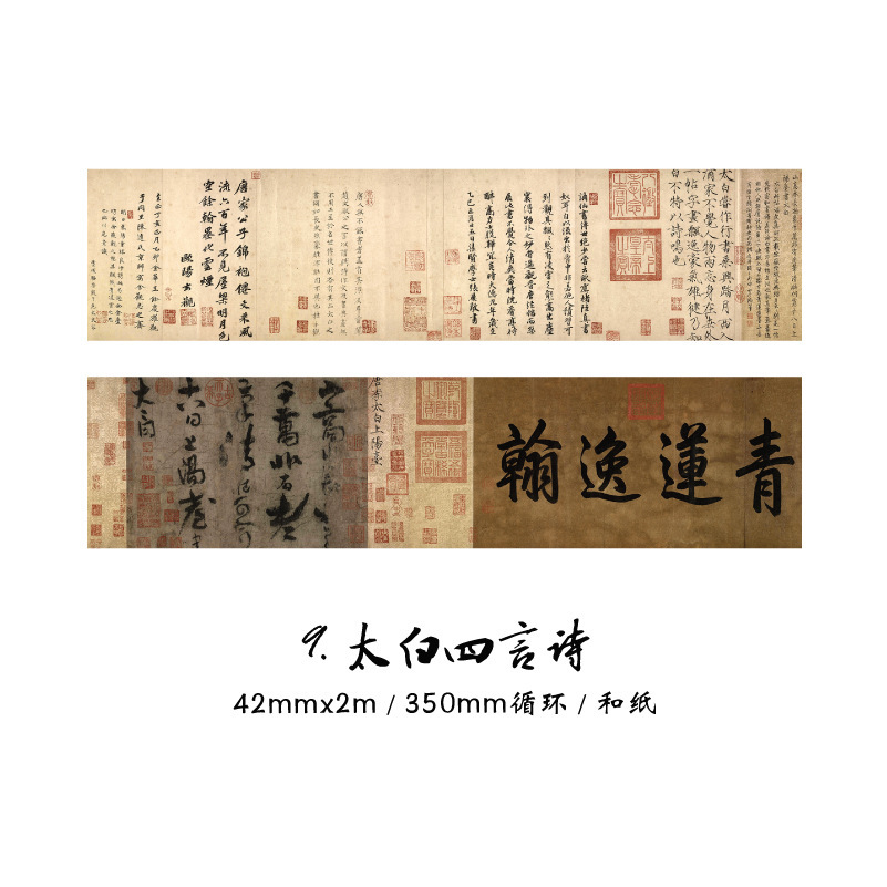 Yanji Shengshi 컬렉션 시리즈 중국 스타일 와시 테이프 중국 고대 스타일 서예 서예 텍스트 장식 핸드북 테이프