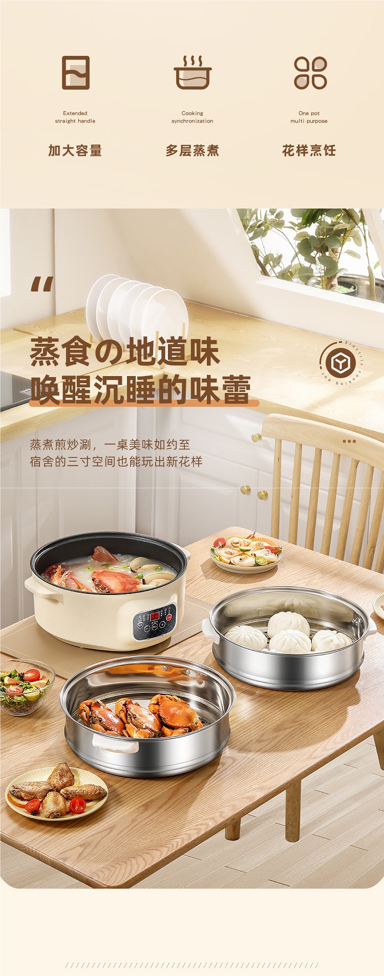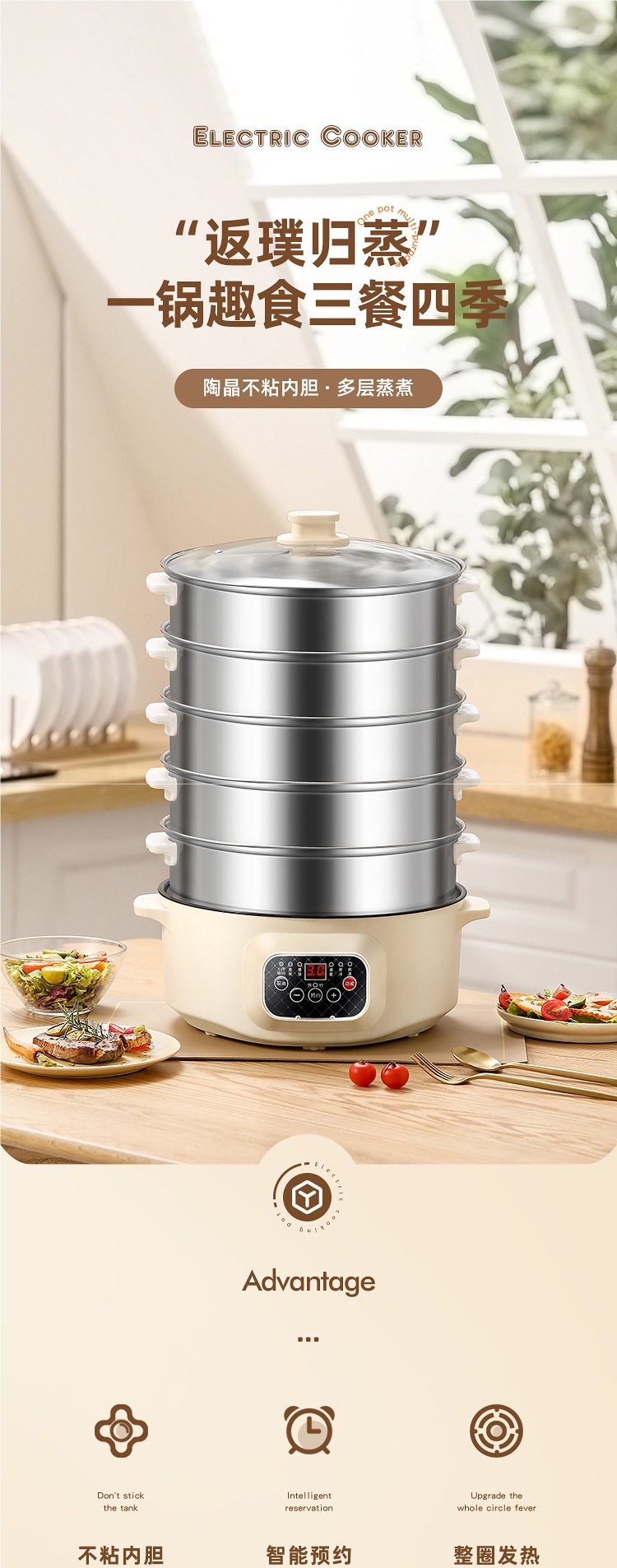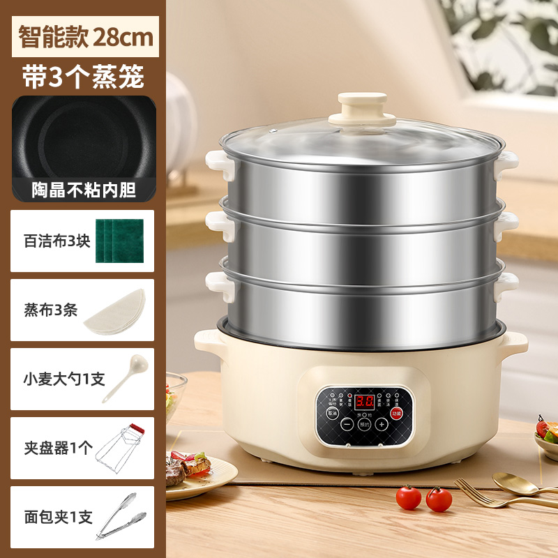 다기능 전기 찜통, 가정용 대용량 3층 전기 찜통, 예약 및 타이밍 다층 찐빵 스마트 찜통스토어 가기