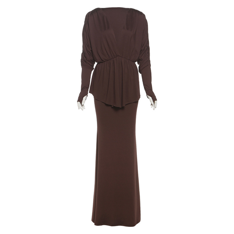 국경을 넘나드는 유럽과 미국 스타일의 2025년 여름 신상 여성 패션 섹시한 브이넥 플리츠 탑 힙 커버 롱 스커트 여성용 슈트