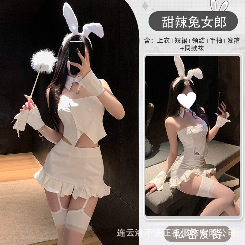 밤에 잠을 못 이루는 여성의 금욕적인 섹시한 순수한 욕망 토끼 소녀 유니폼 정장 qqny 잠옷 유혹스토어 가기