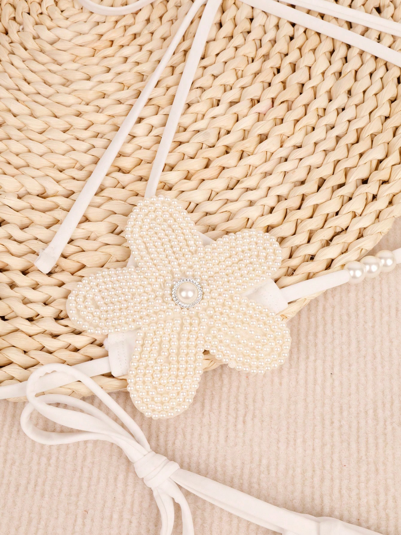 유럽과 미국의 국경 간 입체 꽃 귀여운 소녀 스플릿 수영복 세트 홀터넥 섹시한 스트랩 백리스 비키니스토어 가기