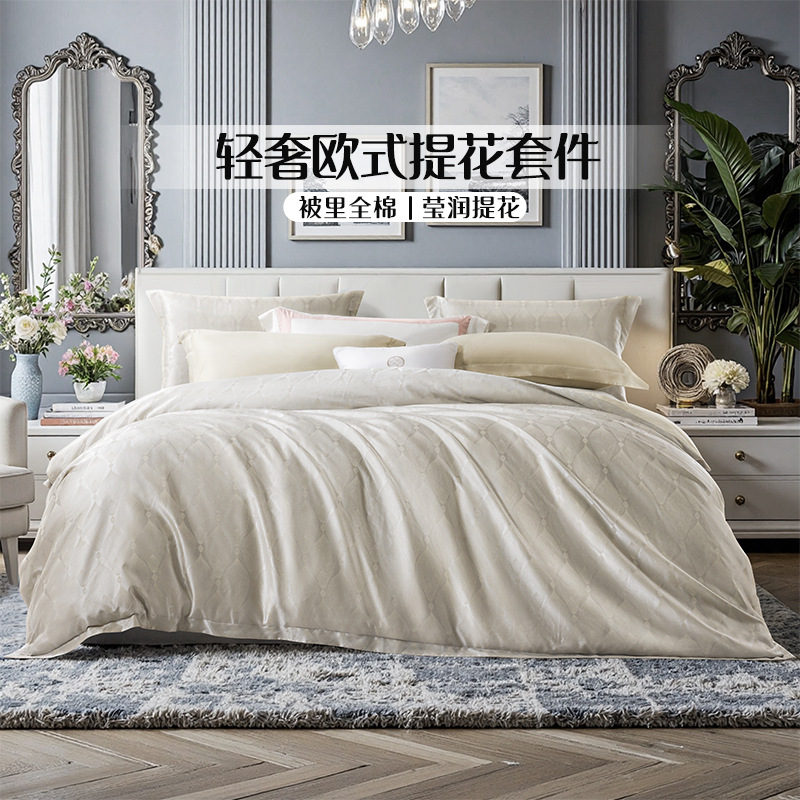 Fuanna 홈 텍스타일 자카드 4피스 라이트 럭셔리 침대 시트, 이불 커버, 유럽식 침구 세트