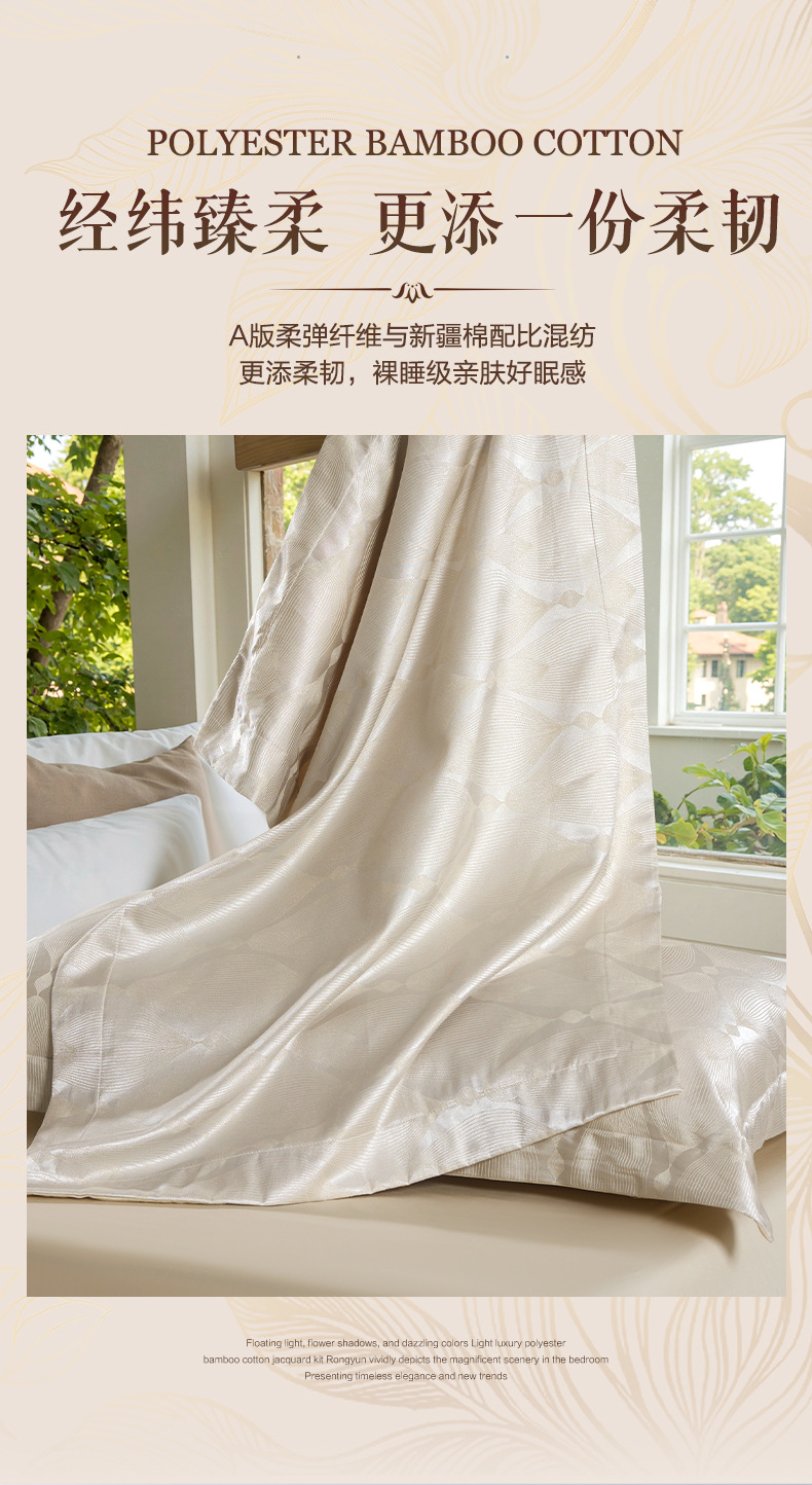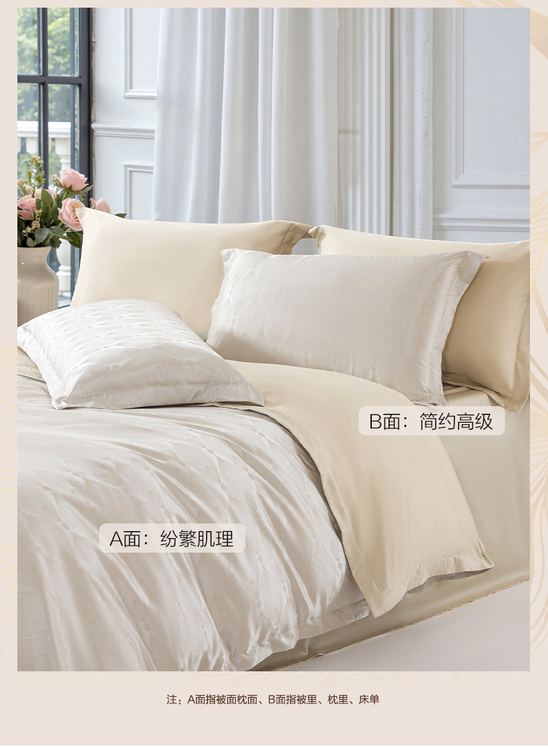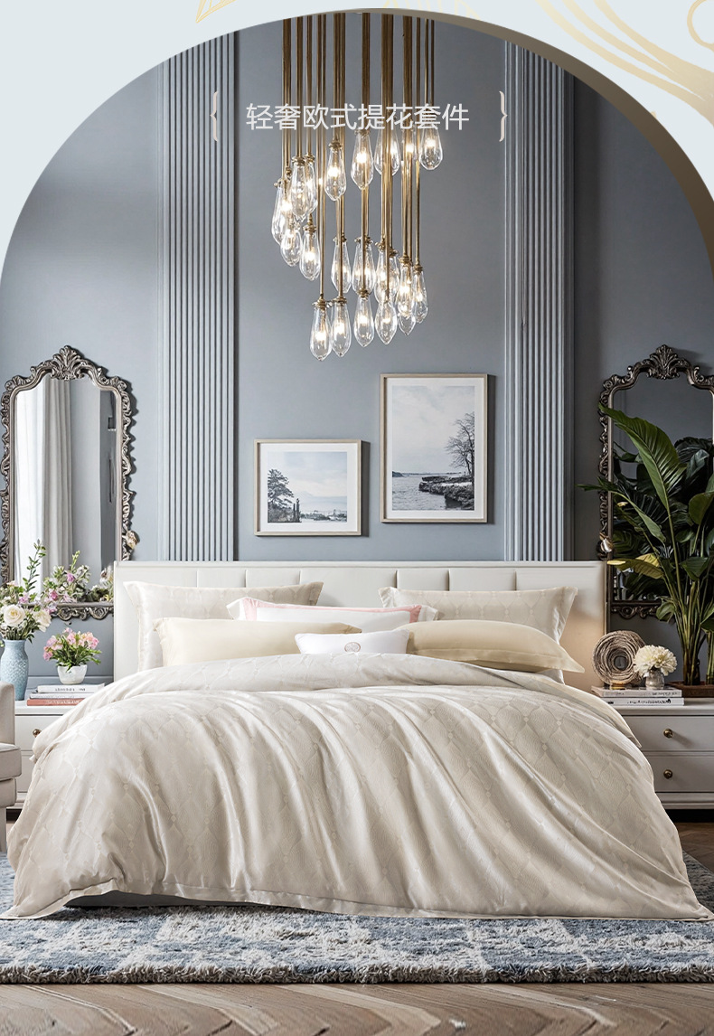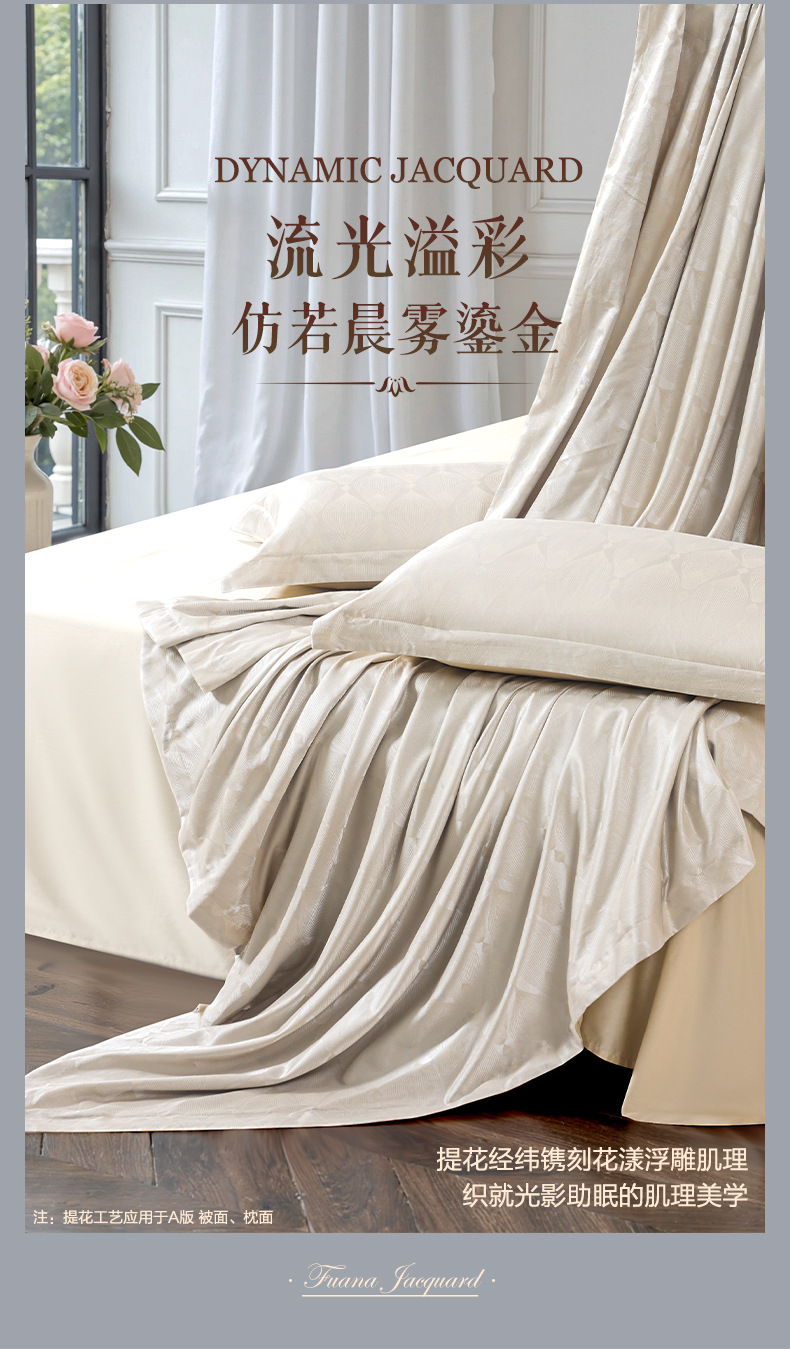 Fuanna 홈 텍스타일 자카드 4피스 라이트 럭셔리 침대 시트, 이불 커버, 유럽식 침구 세트스토어 가기