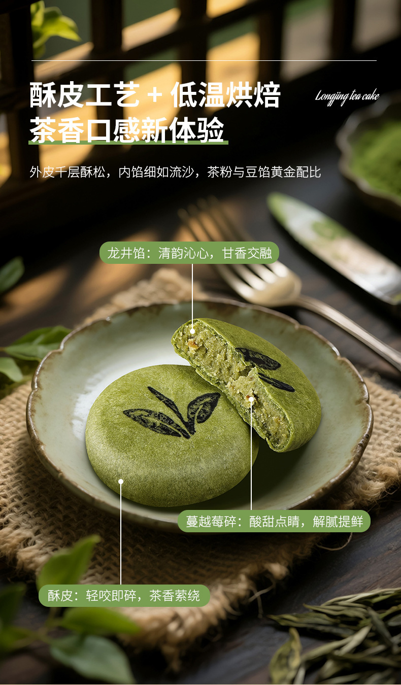 롱징 차 케이크, 말차 페이스트리, 항저우 특산품, 서호 스낵, 아침 식사 대체 식품, 캐주얼 티 스낵, 도매 공동 구매