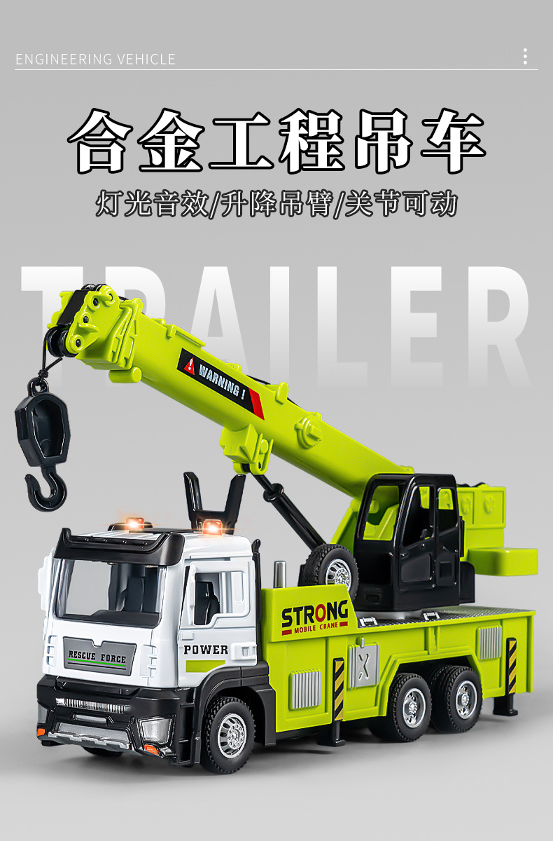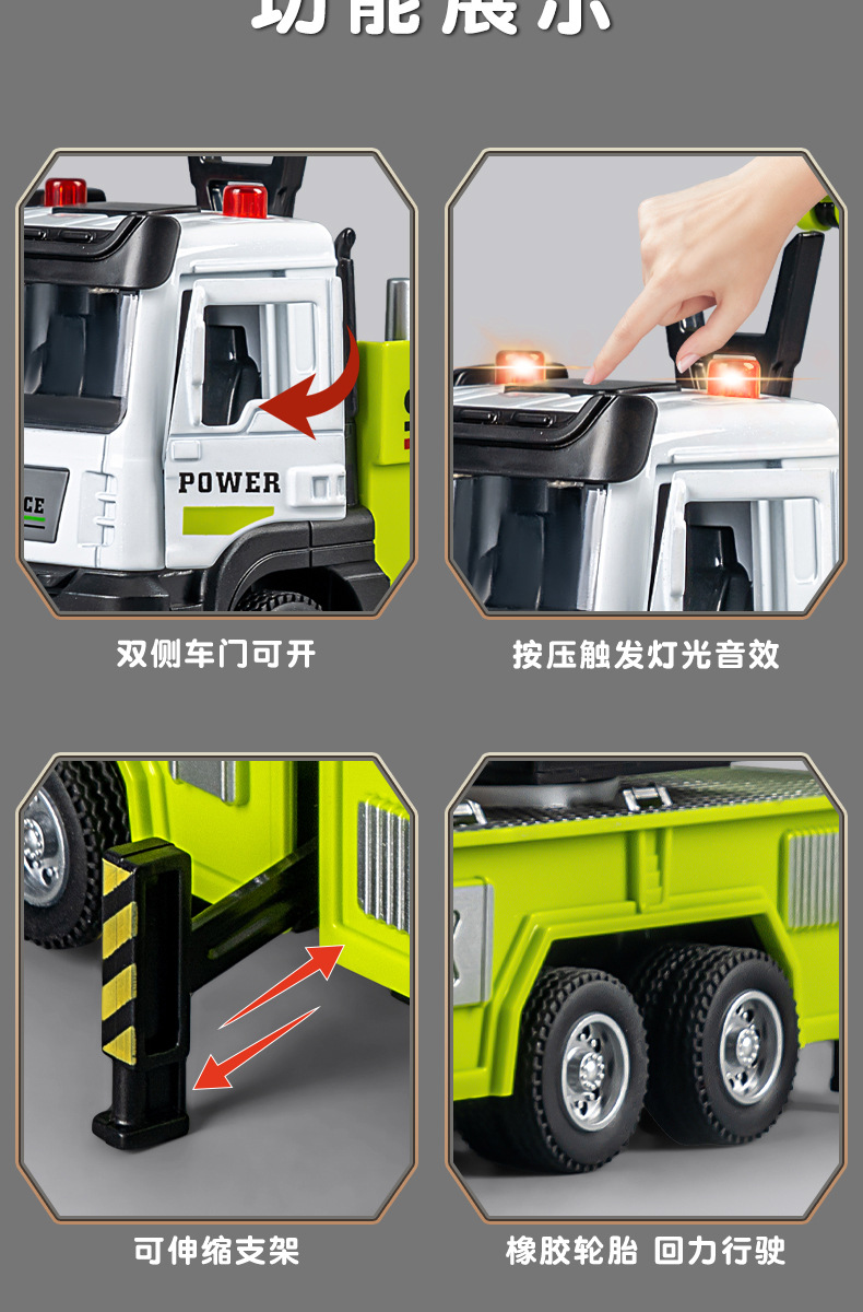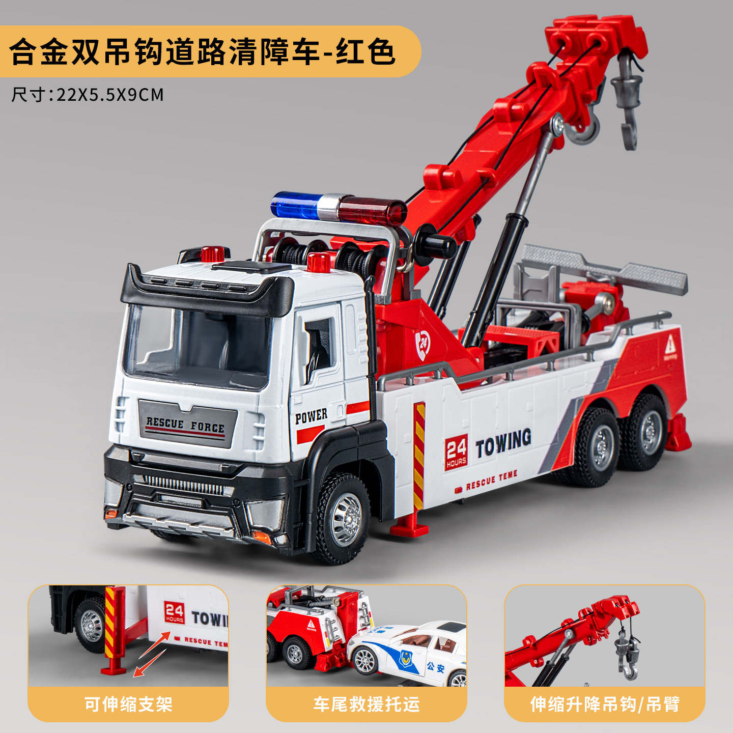 도로 구조 견인 트럭 합금 헤드 플랫베드 트레일러 텔레스코픽 암 엔지니어링 차량 소년 장난감 어린이 선물