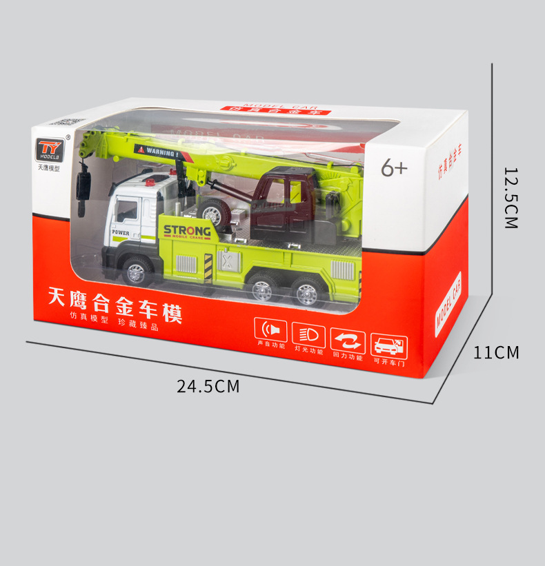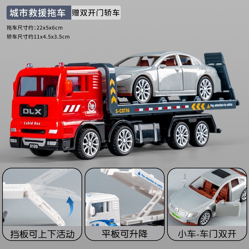 도로 구조 견인 트럭 합금 헤드 플랫베드 트레일러 텔레스코픽 암 엔지니어링 차량 소년 장난감 어린이 선물스토어 가기