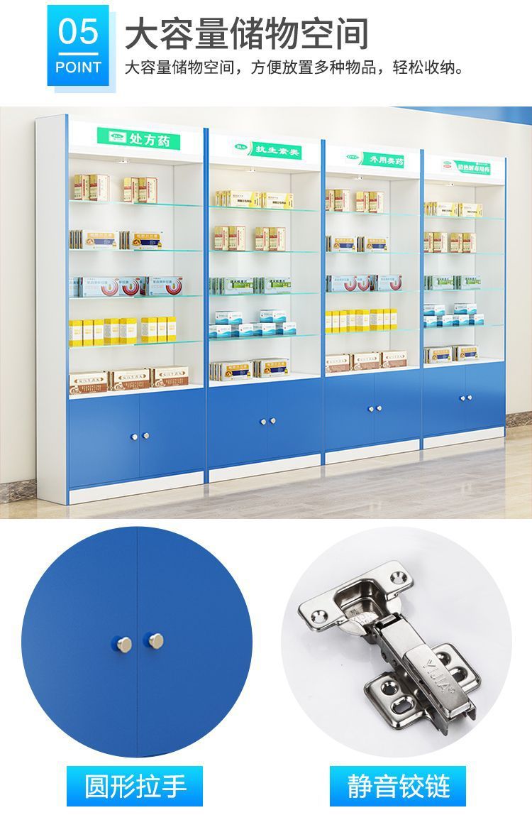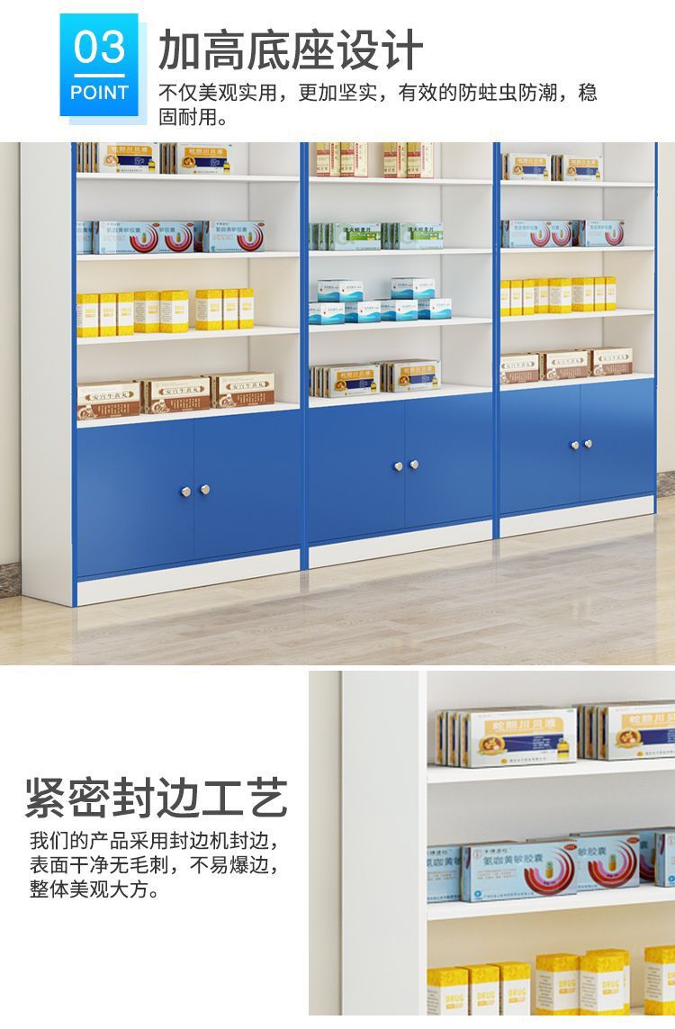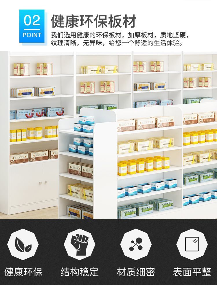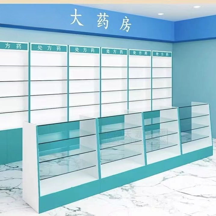 약국 선반 서양 약 캐비닛 약국 약품 디스플레이 캐비닛 디스플레이 랙 클리닉 처방 유리 카운터 디스플레이 캐비닛 나무 양면