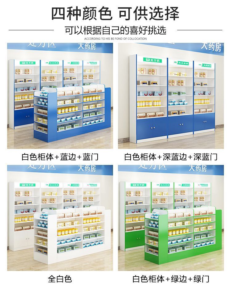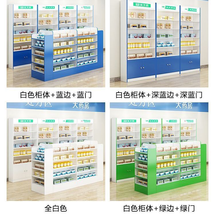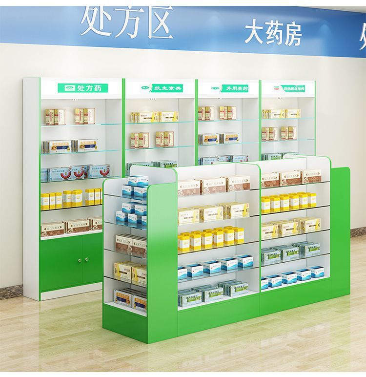 약국 선반 서양 약 캐비닛 약국 약품 디스플레이 캐비닛 디스플레이 랙 클리닉 처방 유리 카운터 디스플레이 캐비닛 나무 양면스토어 가기