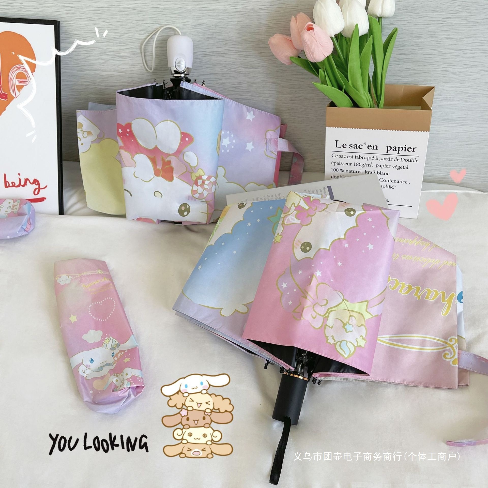 만화 완전 자동 태양 우산 양산 및 햇빛 두 가지 용도 접이식 비닐 태양 보호 UV 그라데이션 우산 철스토어 가기