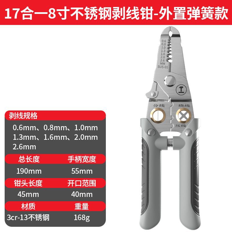 • 외부 스프링 모델 17-in-1 8inch 스테인레스 스틸 와이어 스트리퍼