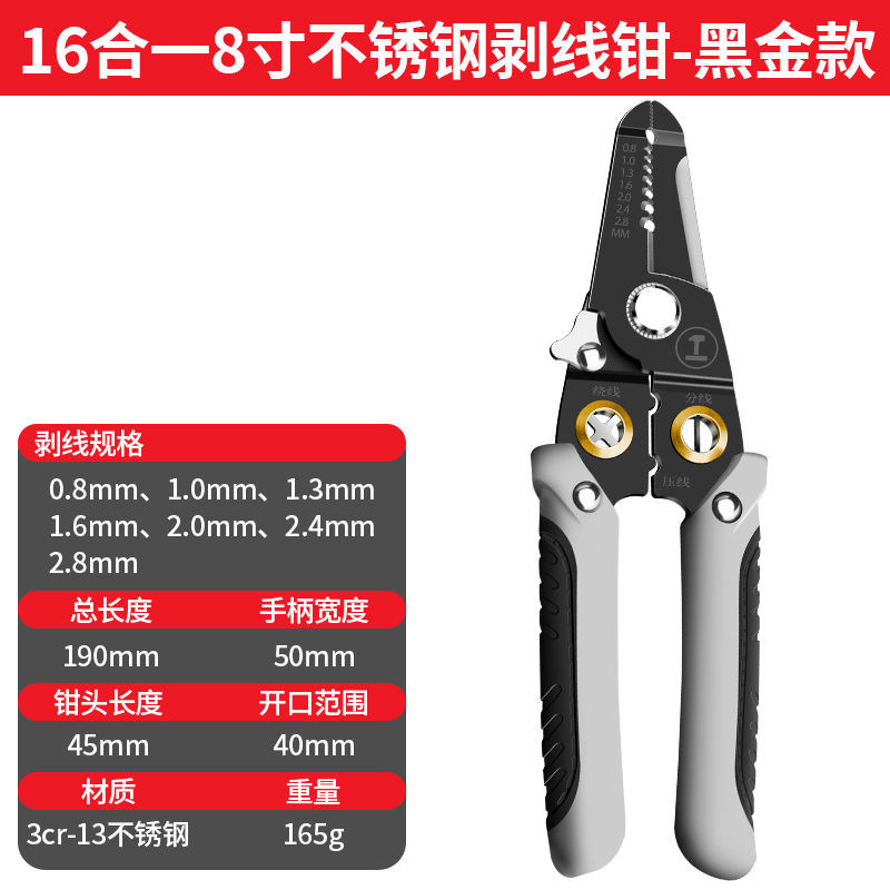 • 블랙 골드 16-in-1 8inch 스테인레스 스틸 와이어 스트리퍼