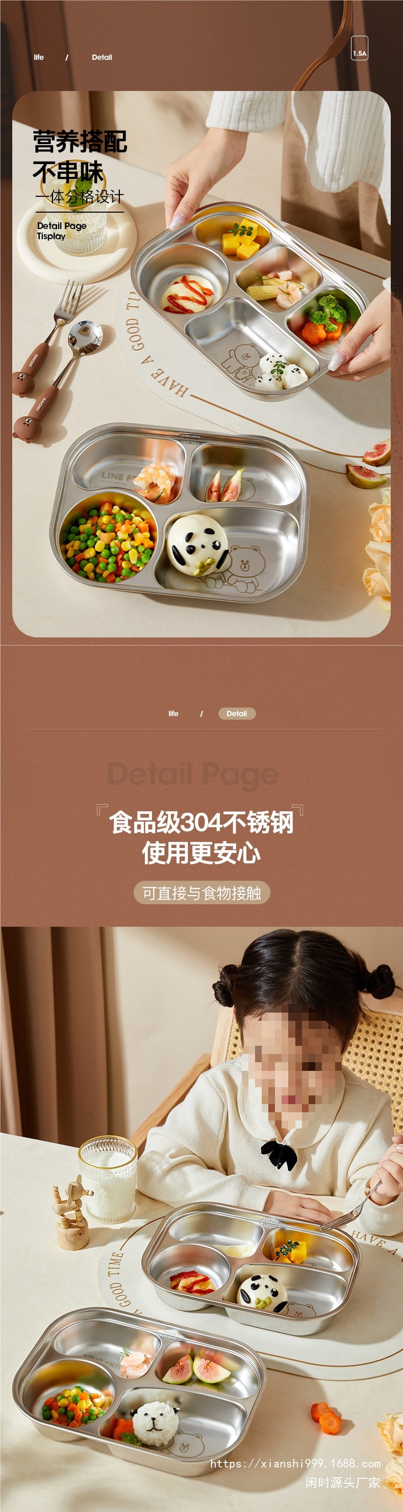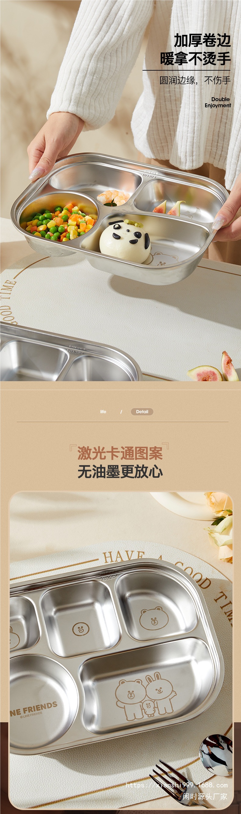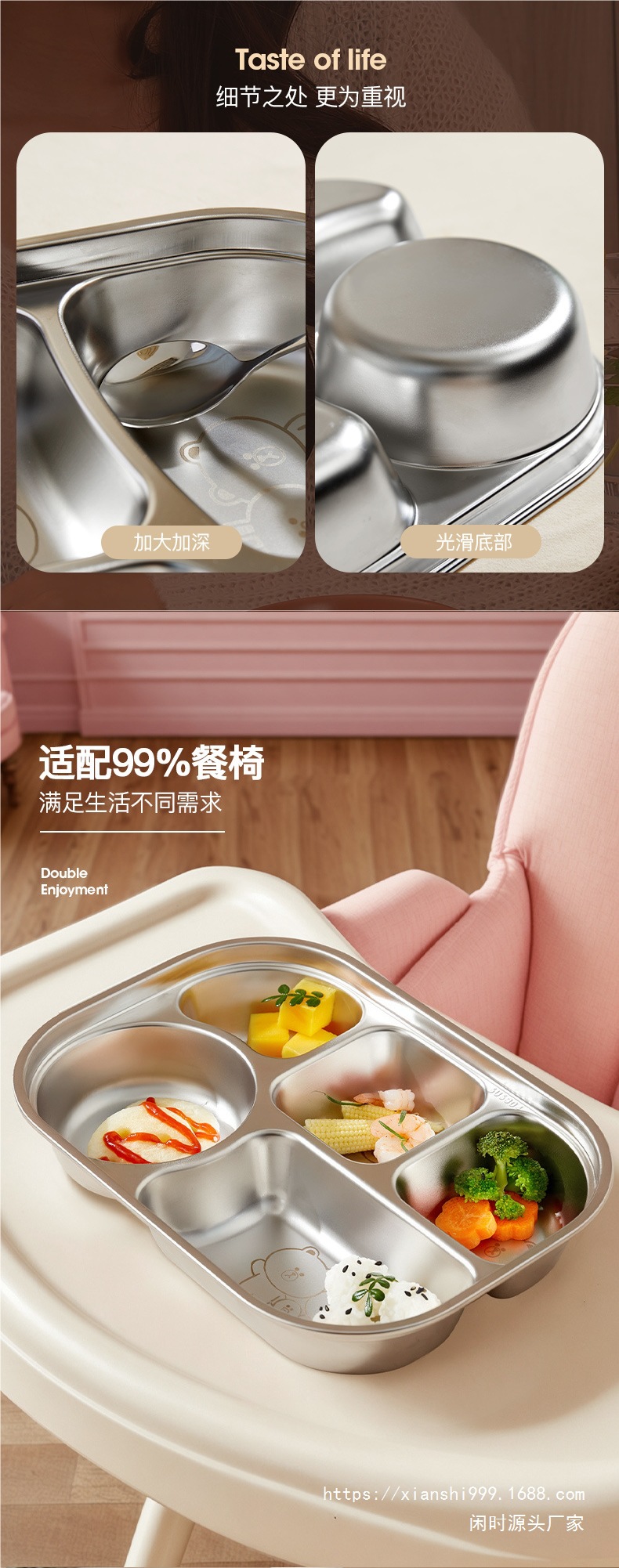 어린이 칸막이 접시 스테인레스 스틸 칸막이 접시 초등학생 유치원 아기 식기 접시 접시 가정용 식사 접시스토어 가기