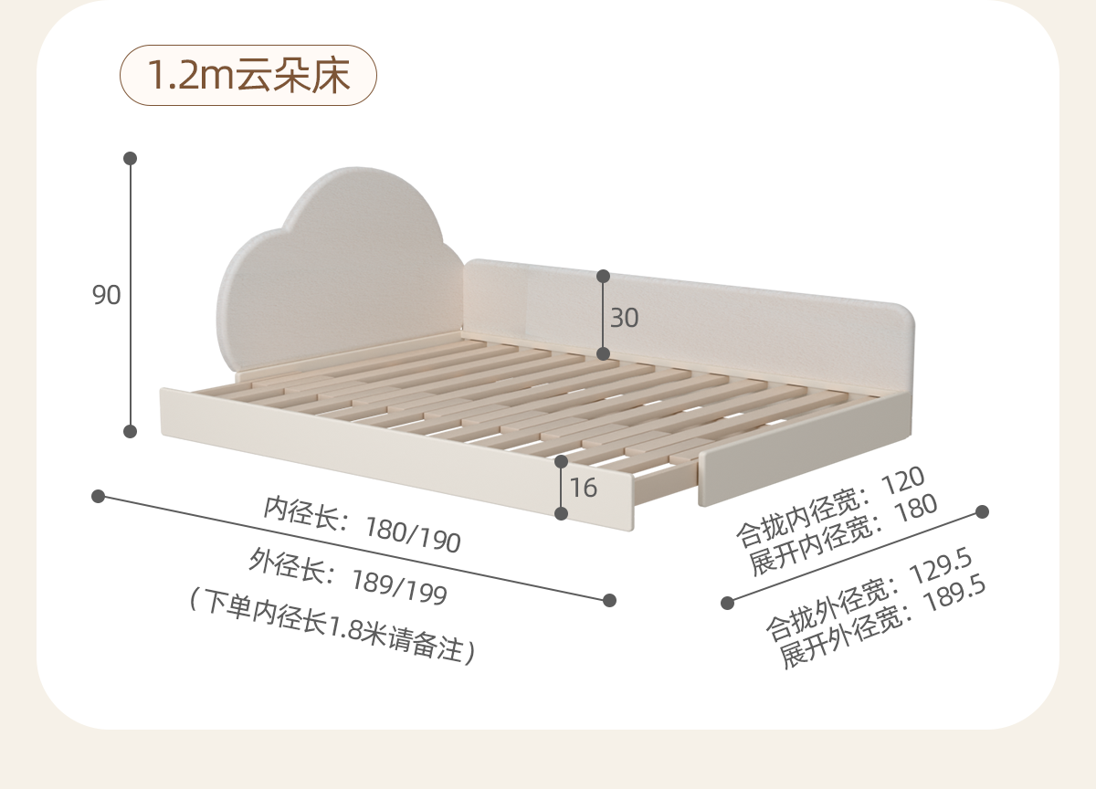 • 120*180/190 텔레스코픽 침대 + 클라우드 침대 옆
