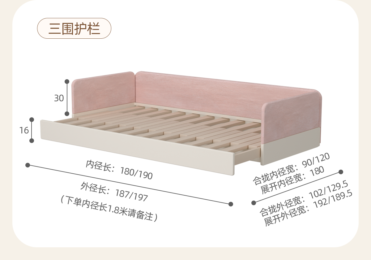 • 120*180/190 텔레스코픽 침대 + 복숭아 핑크 울타리