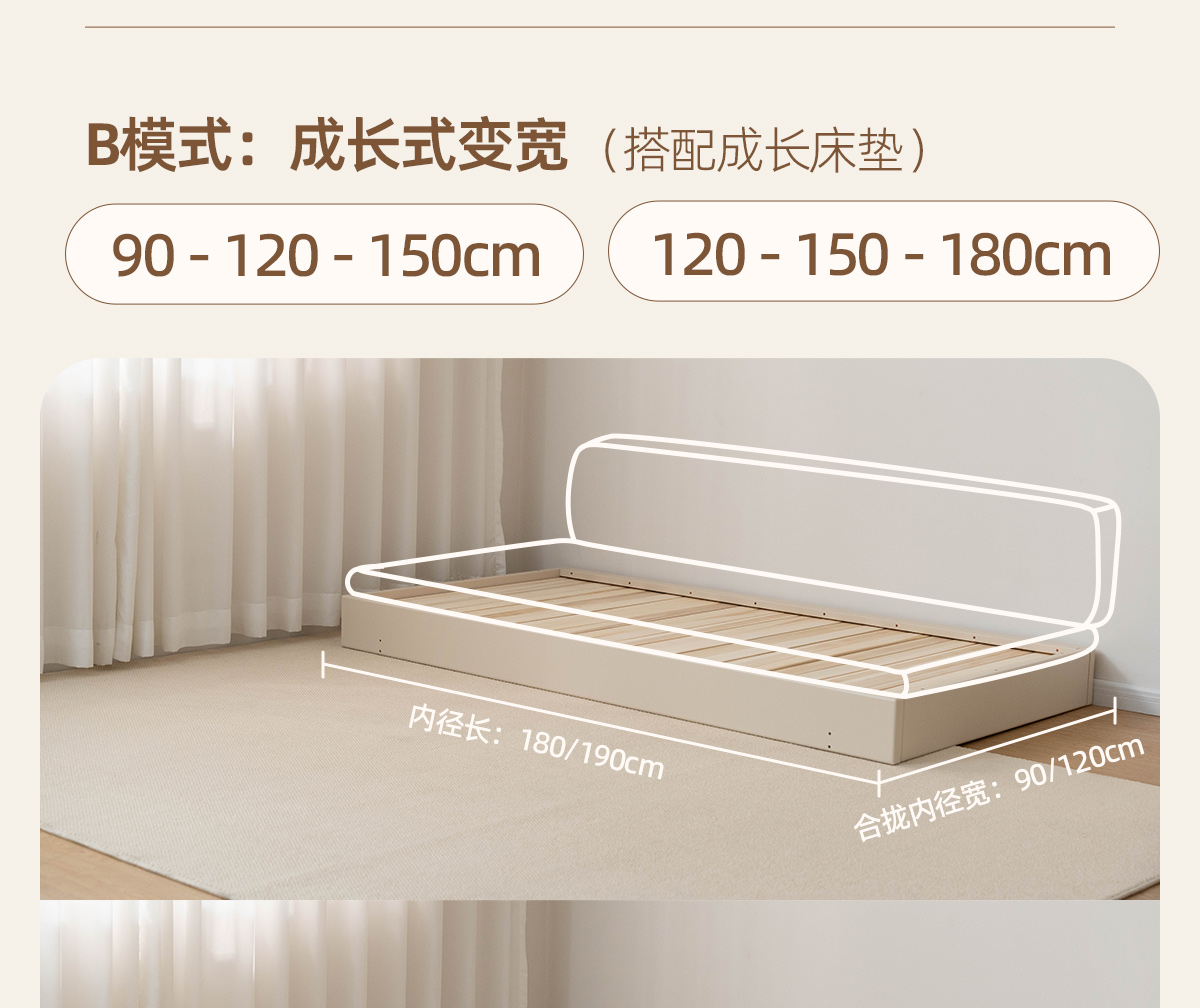 • 120*180/190 텔레스코픽 침대 + 클라우드 침대 옆 + 성장 매트리스