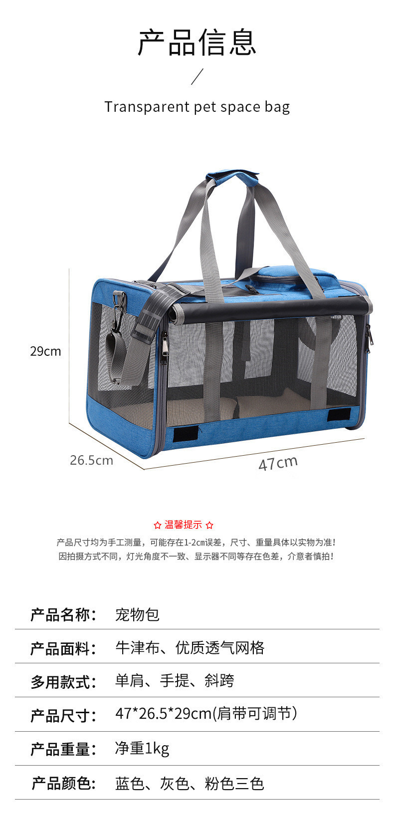 Amazon 국경 간 베스트셀러 접이식 대용량 통기성 고양이 가방, 휴대용 고양이 및 개 애완 동물 가방