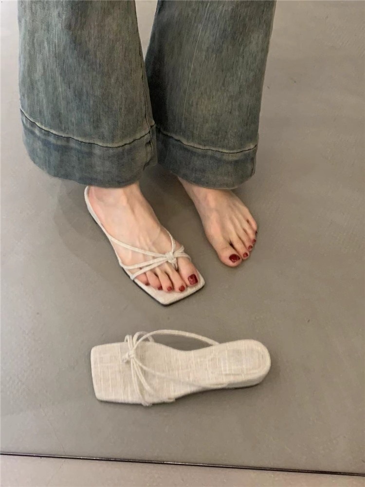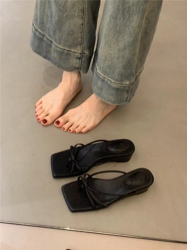 여성용 겉옷용 프렌치 이브닝 슬리퍼 2024 여름 복고풍 얇은 스트랩 플립 플롭 비치 레오파드 프린트 웨지 샌들