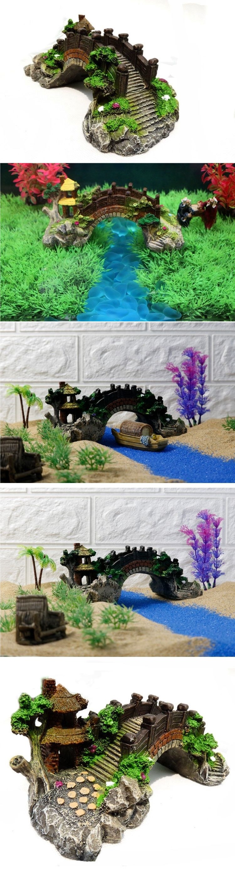 공장 직접 판매 수족관 조경 다리 수지 피난처 키오스크 다리 거북이 탱크 등반 태양 갑판 수조 장식 용품 아치형스토어 가기