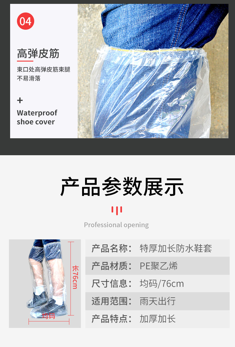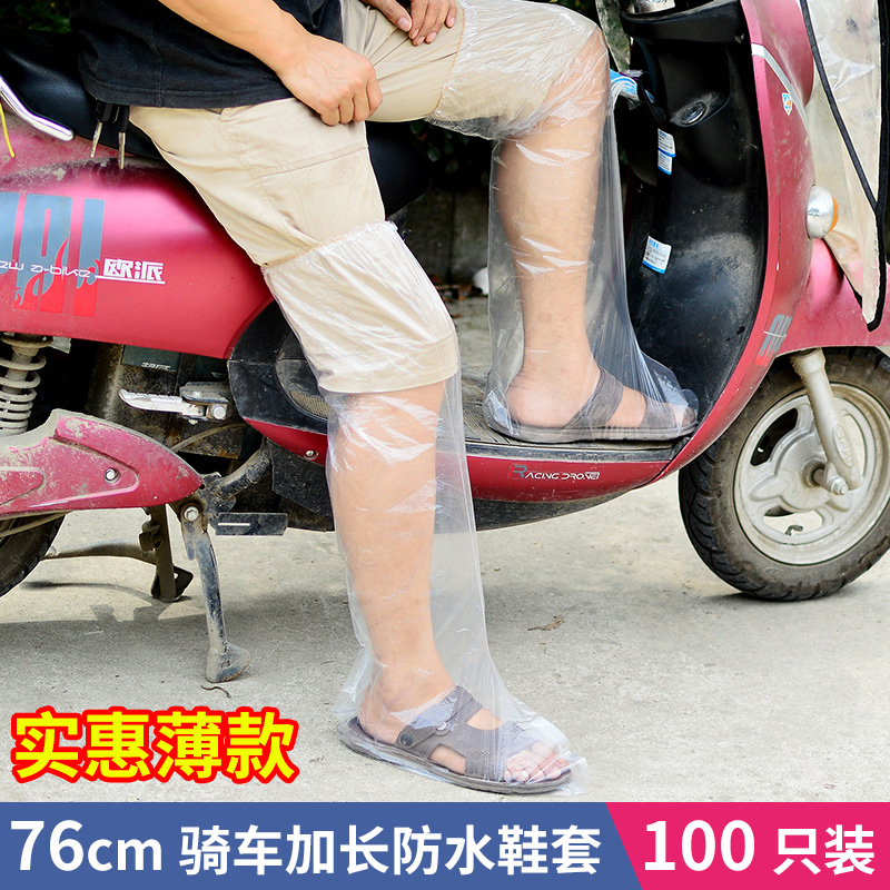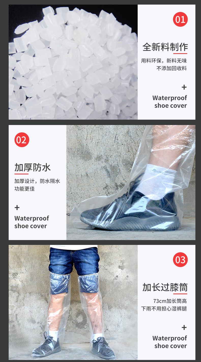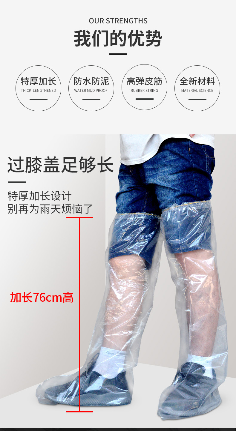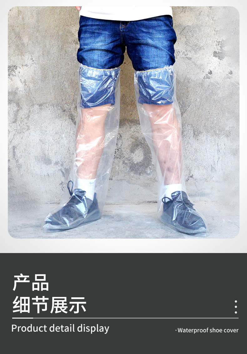 일회용 레인슈즈 커버, 사이클링용 무릎 위 미끄럼 방지 및 내마모성 플라스틱 발 커버, 방수 및 방수 래프팅 레인 팬츠