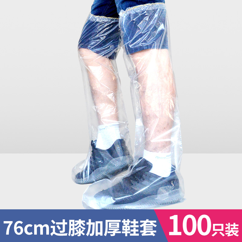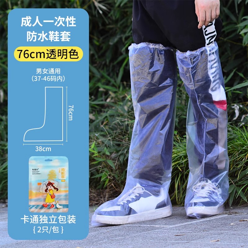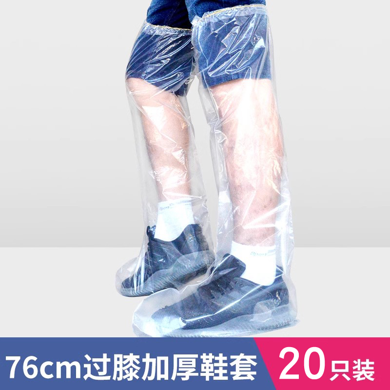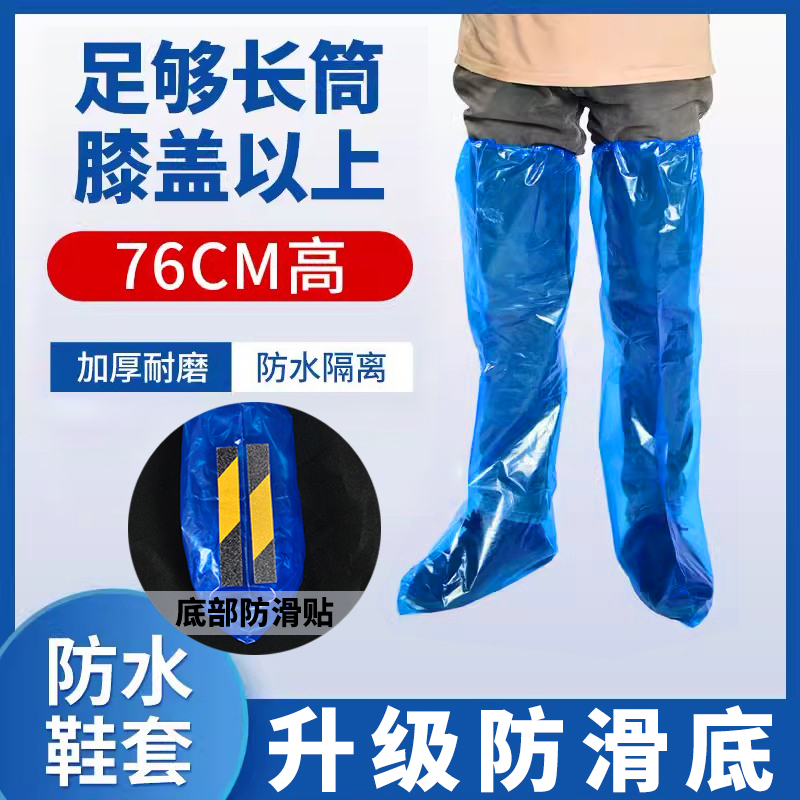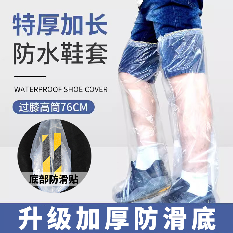 일회용 레인슈즈 커버, 사이클링용 무릎 위 미끄럼 방지 및 내마모성 플라스틱 발 커버, 방수 및 방수 래프팅 레인 팬츠스토어 가기
