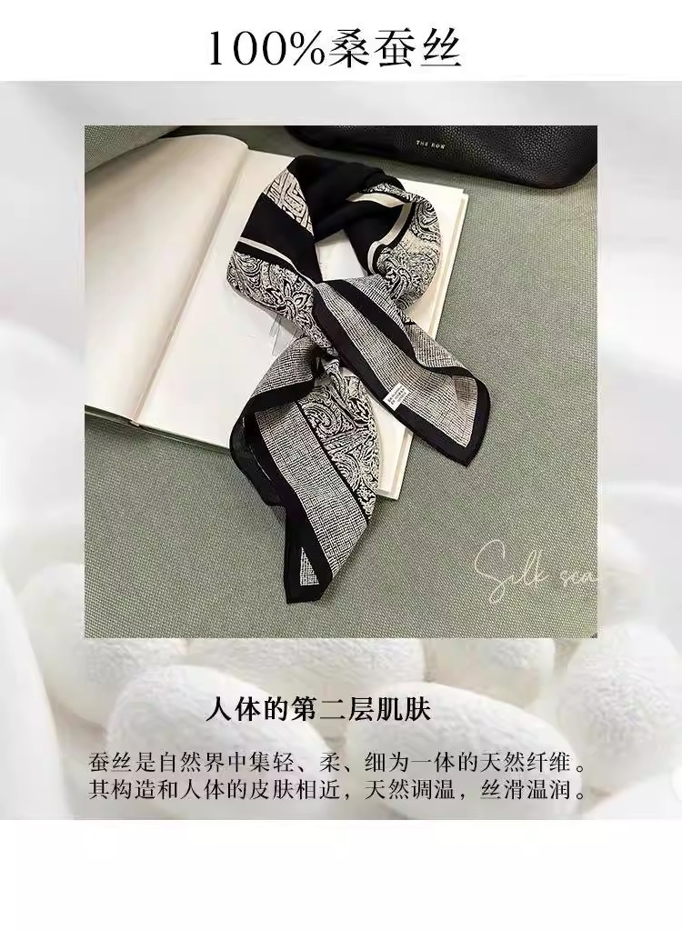 100% 뽕나무 실크 65 실크 크레이프 드 신 흑백 바로크 여성 여름 고급 얇은 숄 라이트 럭셔리 실크 스카프
