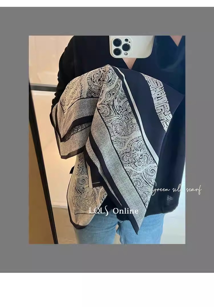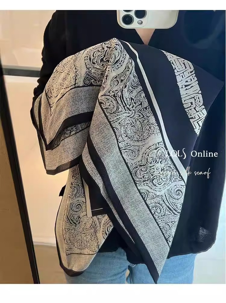 100% 뽕나무 실크 65 실크 크레이프 드 신 흑백 바로크 여성 여름 고급 얇은 숄 라이트 럭셔리 실크 스카프스토어 가기