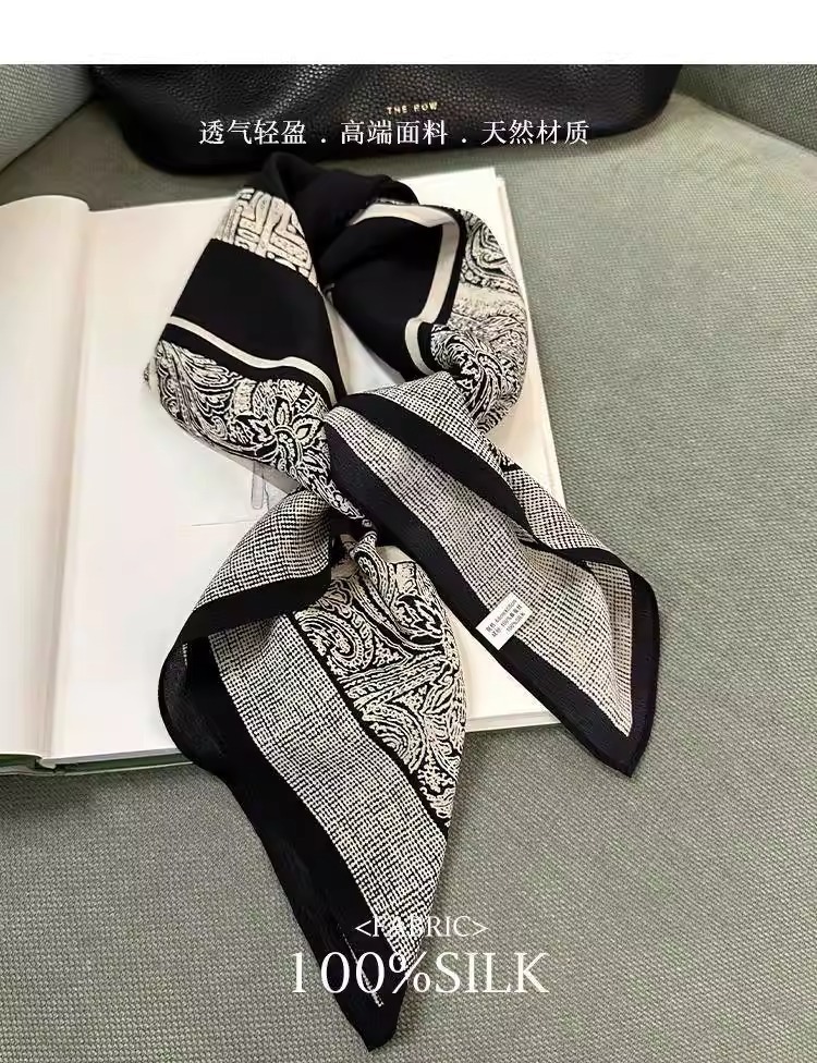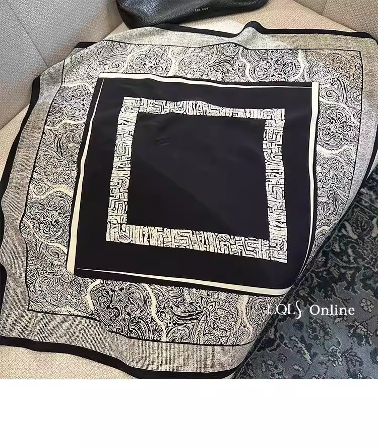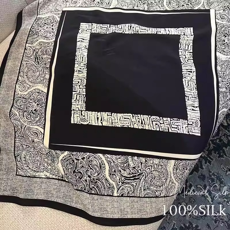• 흑백 바로크 65*65cm 크레이프 드 신 실크 스퀘어 스카프