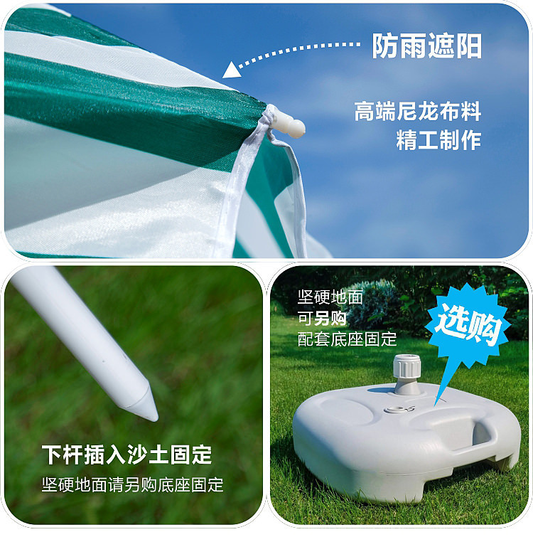 • 2.2m 녹색 및 흰색 줄무늬, 차양 및 방수, 베이스는 포함되지 않음