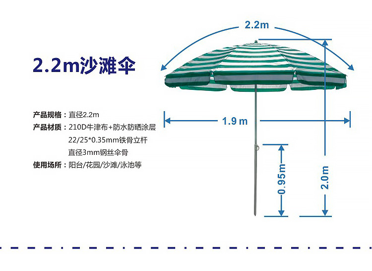 • 2.2m 파란색과 흰색 줄무늬, 차양 및 방수, 베이스 없음