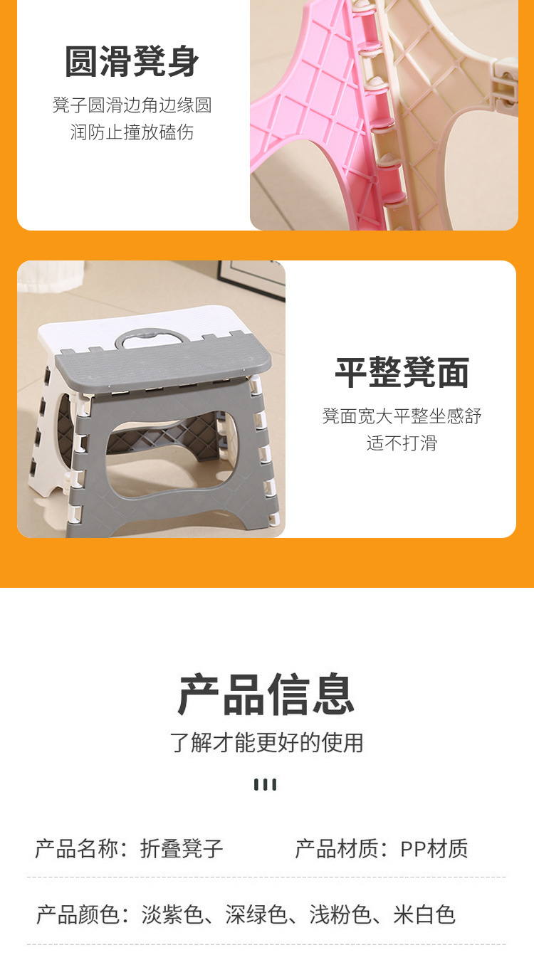 성인과 어린이를 위한 두꺼운 플라스틱 접이식 의자, 소형 벤치, 야외 휴대용 벤치, 슈퍼마켓 선호 공장 직접 공급 선물스토어 가기