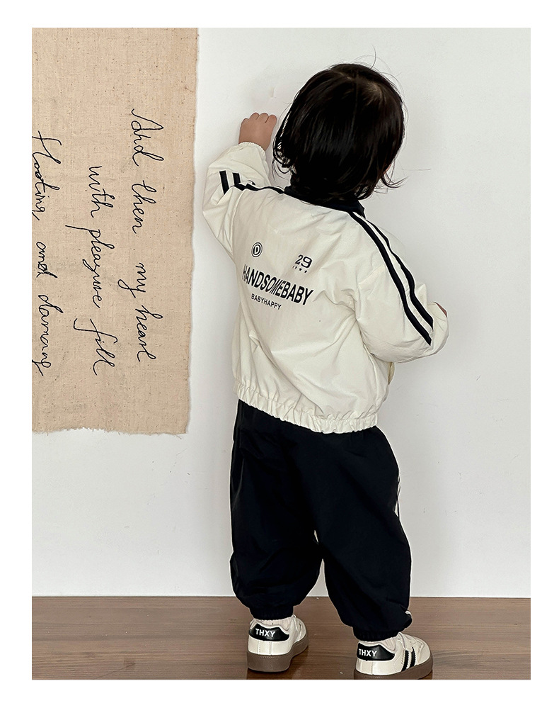 Dianxi 2025 새로운 가을 스타일 유아 스탠드 칼라 야구 유니폼 세트 아기 한국 스타일 재킷과 바지 투피스 트렌디 세트스토어 가기