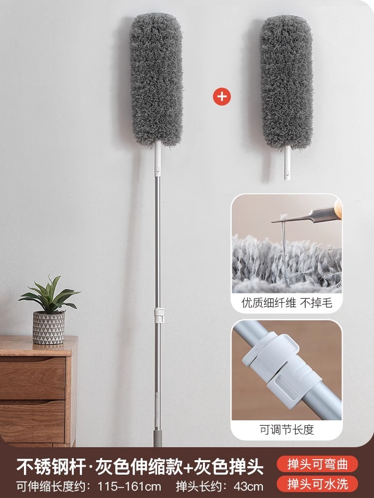 • [업그레이드된 알루미늄 폴] 그레이 더스터 헤드 + 그레이 교체용 더스터 헤드 수납식
