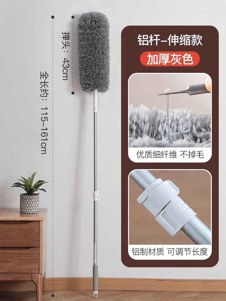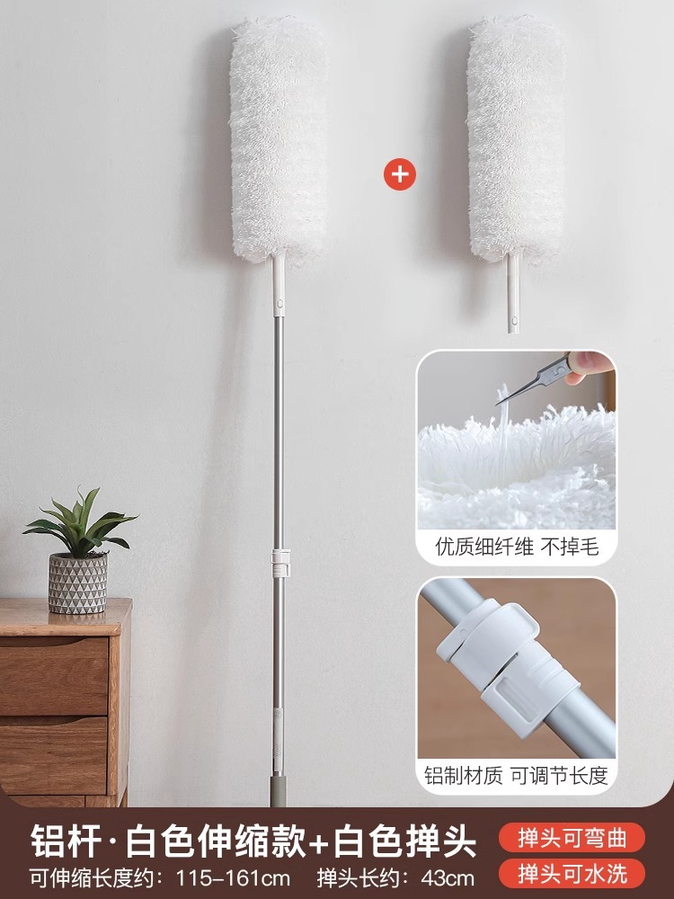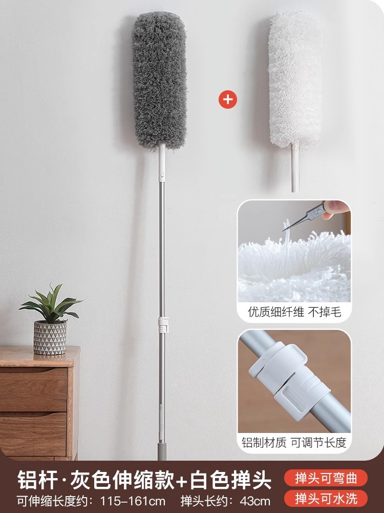 • [업그레이드된 알루미늄 폴] 회색 먼지떨이 + 흰색 교체용 먼지떨이 개폐식