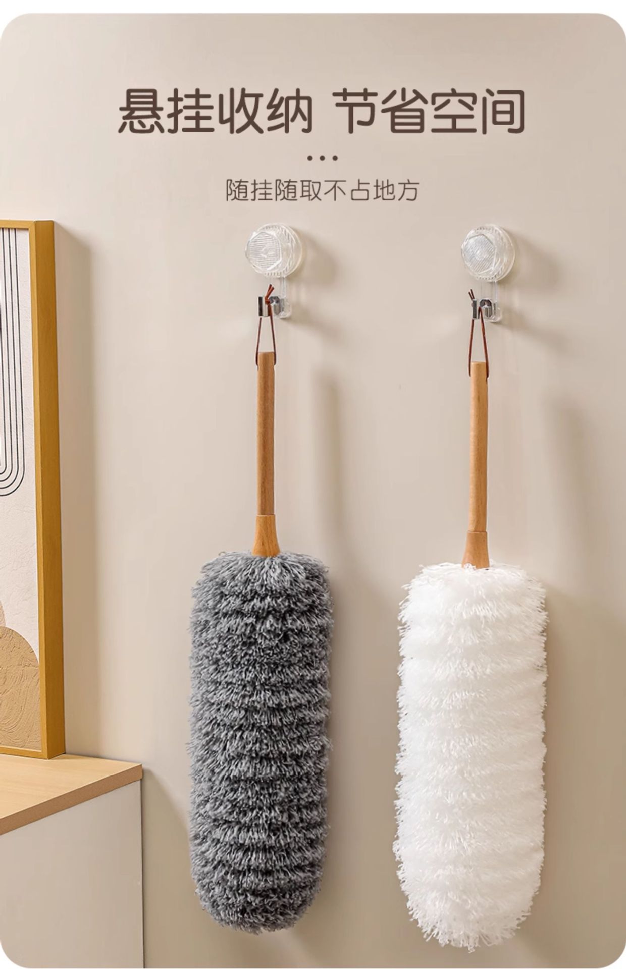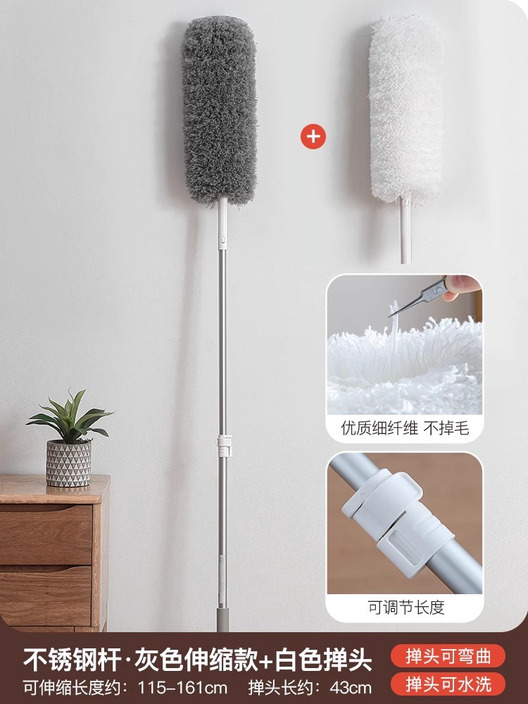 • [두꺼운 스테인레스 스틸 폴] 회색 먼지떨이 + 흰색 교체용 먼지떨이 ☆ 확장 가능