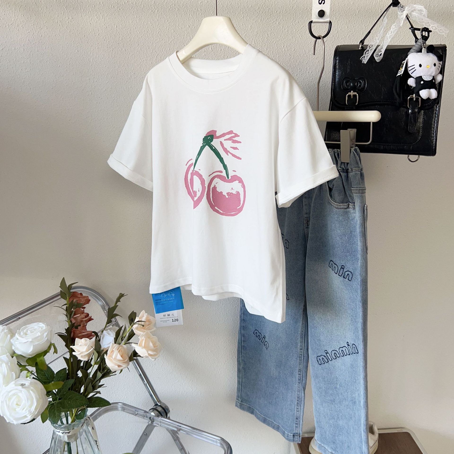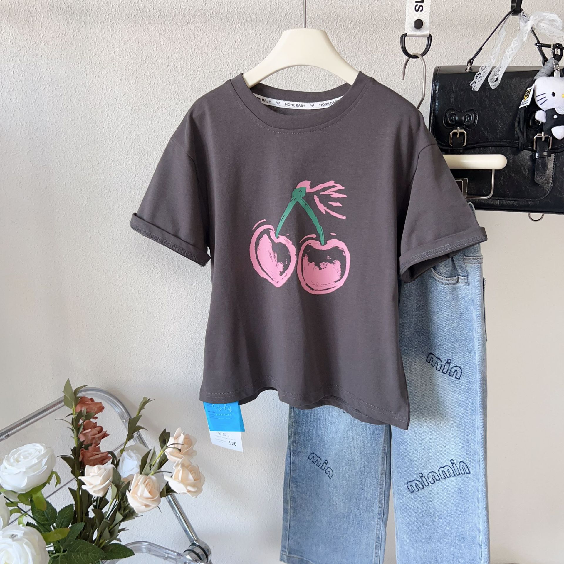 아동 티셔츠 2025 여아 여름 신상품 3207 체리 스타일 반팔 티셔츠 중대형 아동 한국 아동복스토어 가기