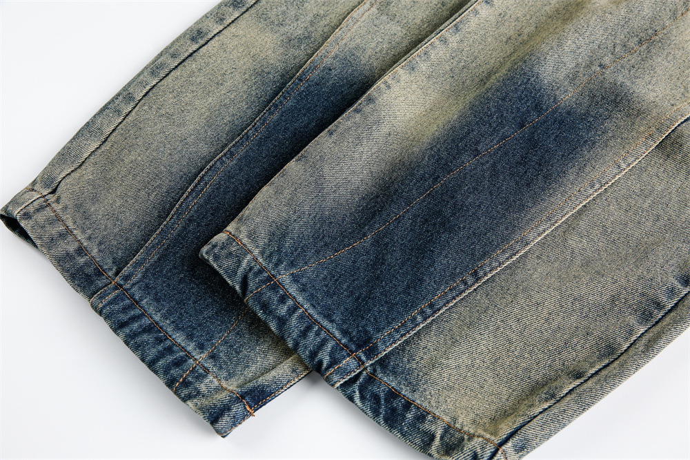 유럽과 미국의 스트리트 남성 청바지 남성 틈새 타이 염색 스플라이싱 세이버 팬츠 트렌디 브랜드 루즈한 새로운 스타일 남아용 바지스토어 가기