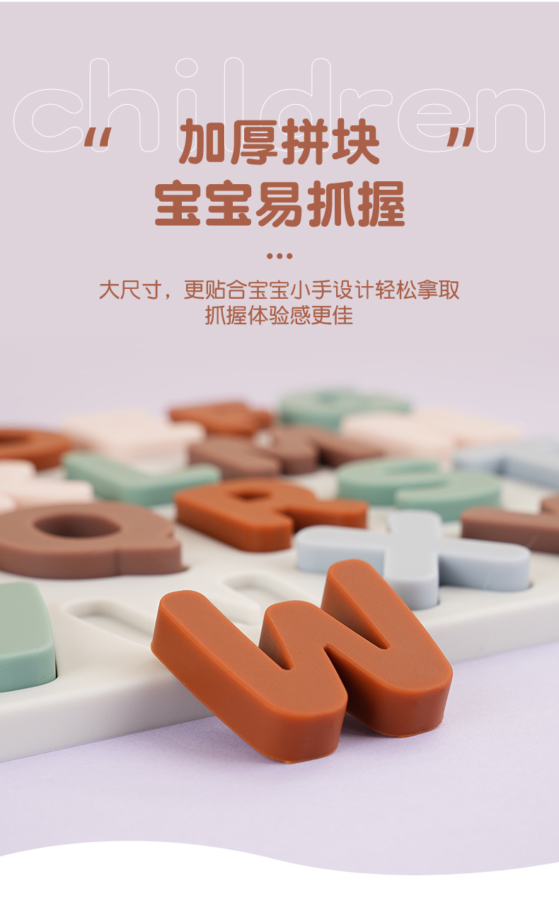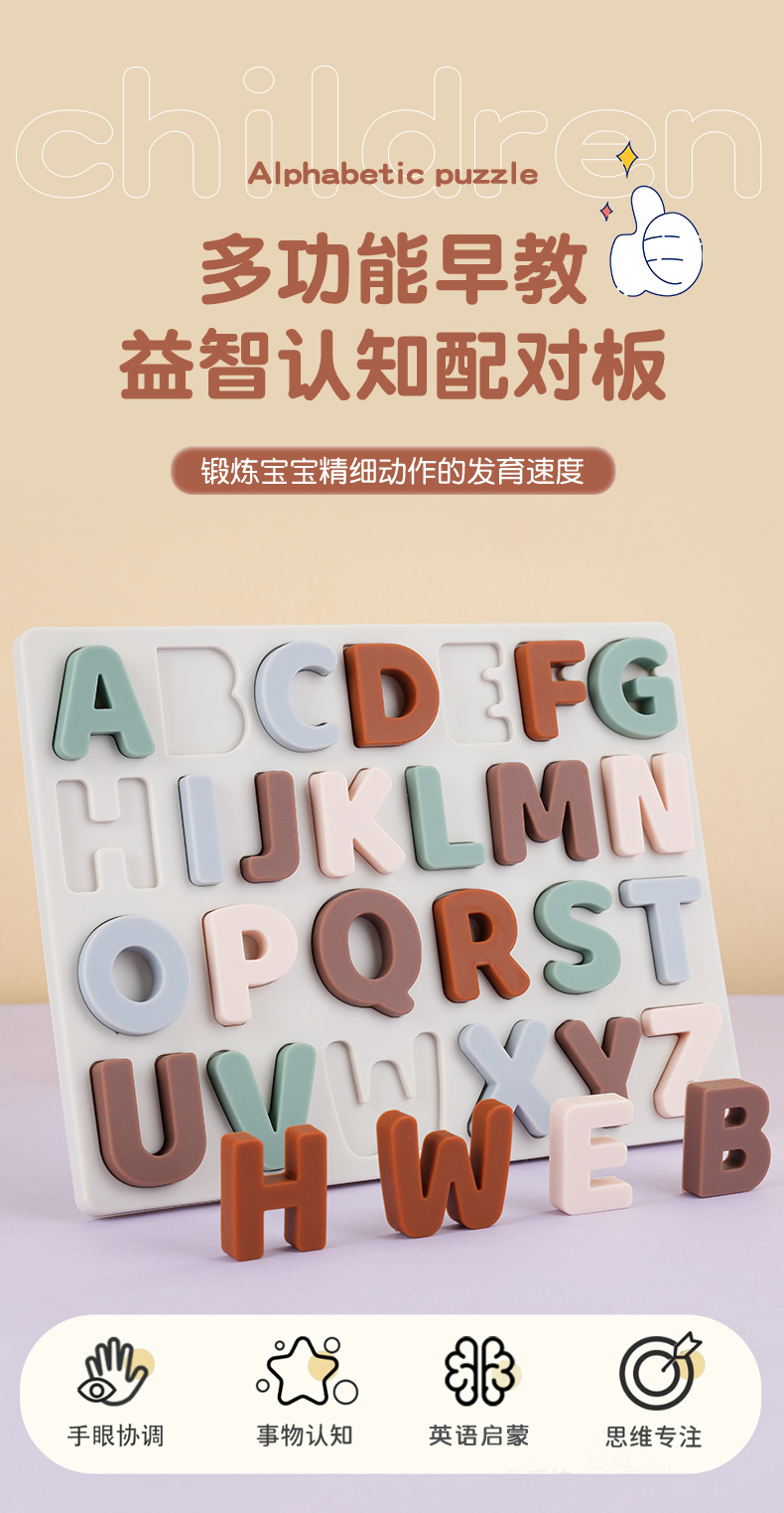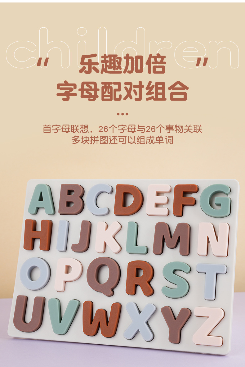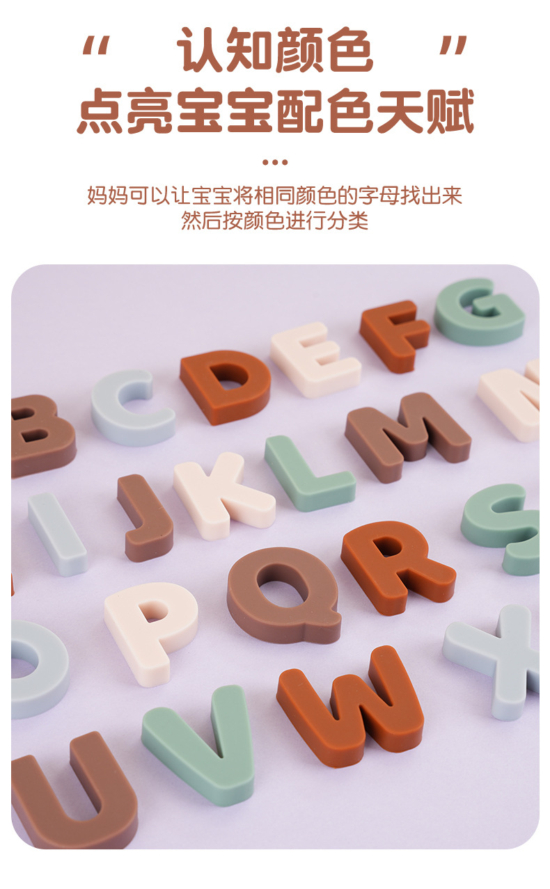 실리콘 알파벳 인식 퍼즐 아기 영어 알파벳 계발 인지 교육 보조 조기 교육 교육 입체 알파벳 퍼즐