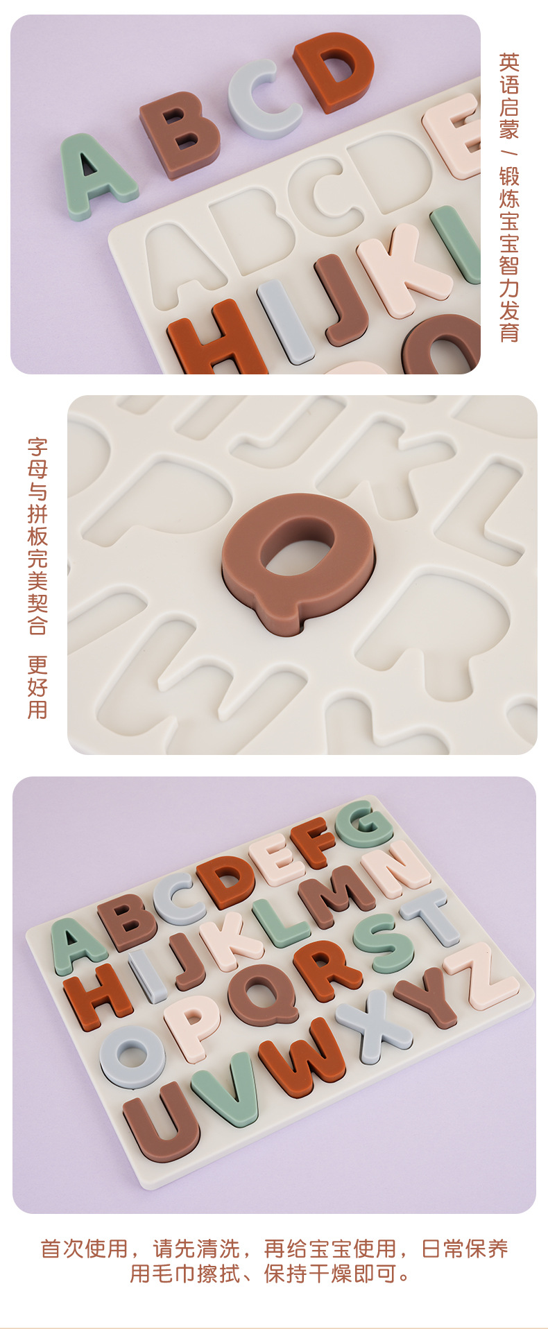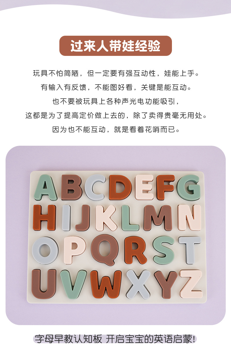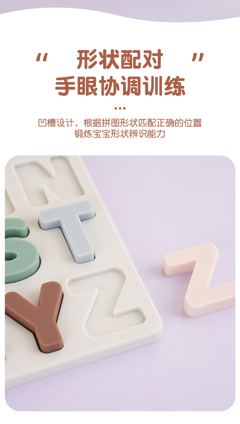 실리콘 알파벳 인식 퍼즐 아기 영어 알파벳 계발 인지 교육 보조 조기 교육 교육 입체 알파벳 퍼즐