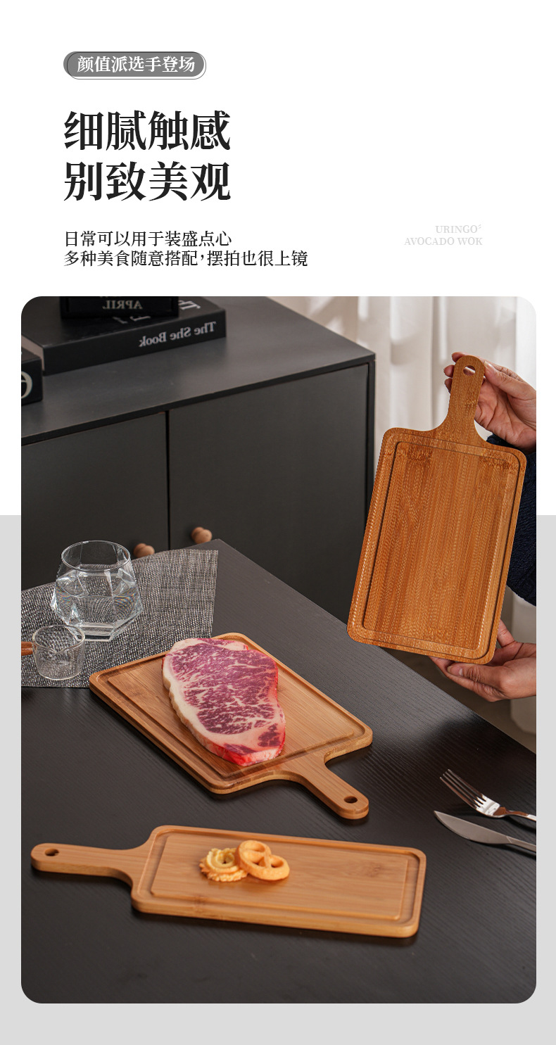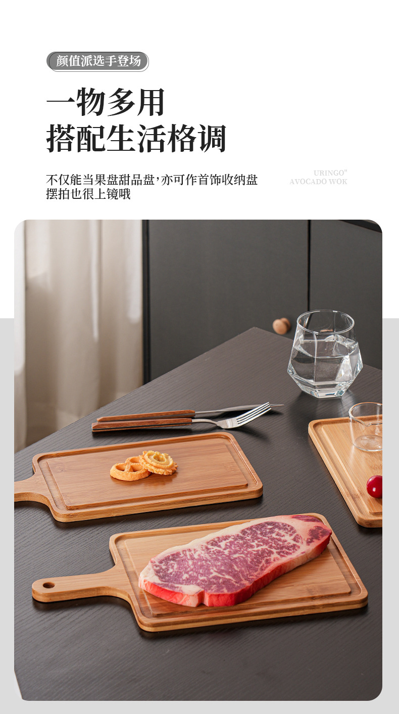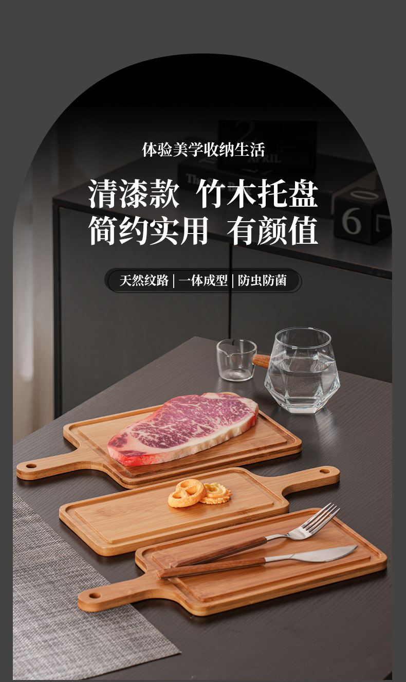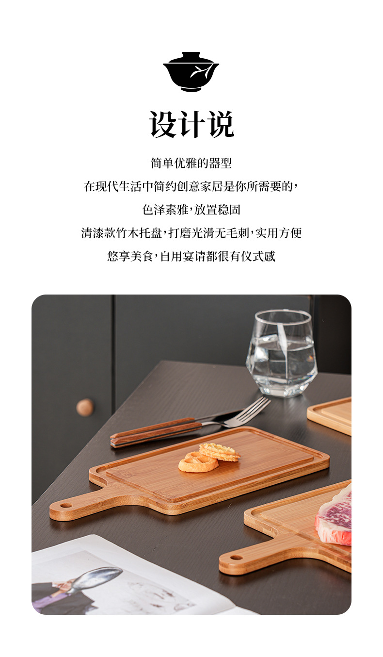 베이킹 나무 트레이 빵 베이스 상업용 스낵 대나무 제품 서양 스테이크 디스플레이 직사각형 손잡이 디너 플레이트