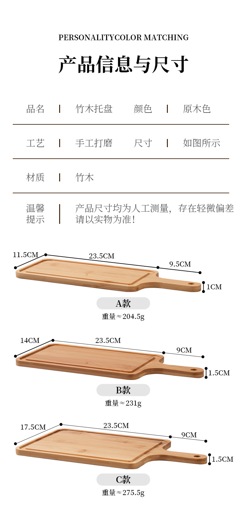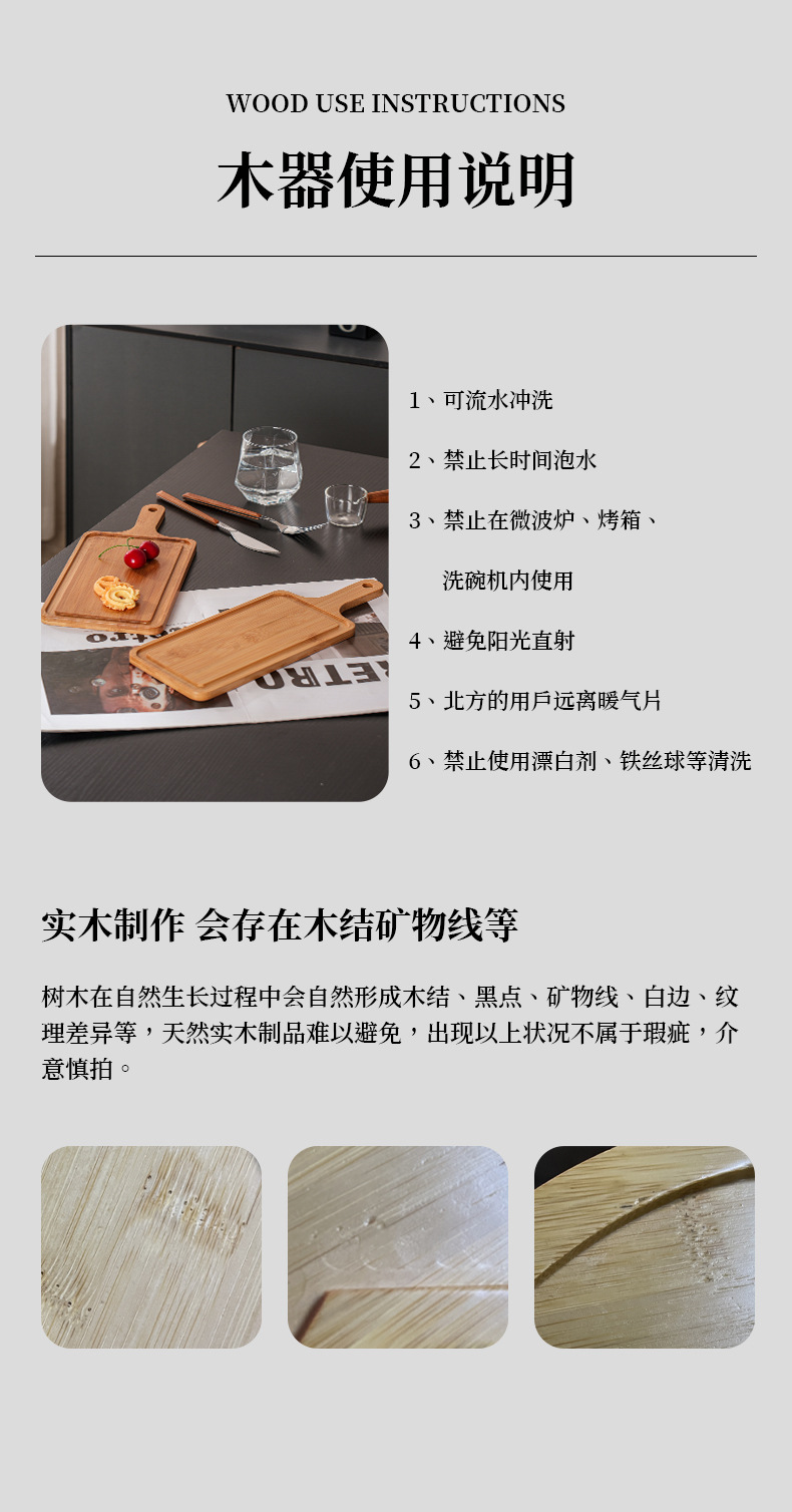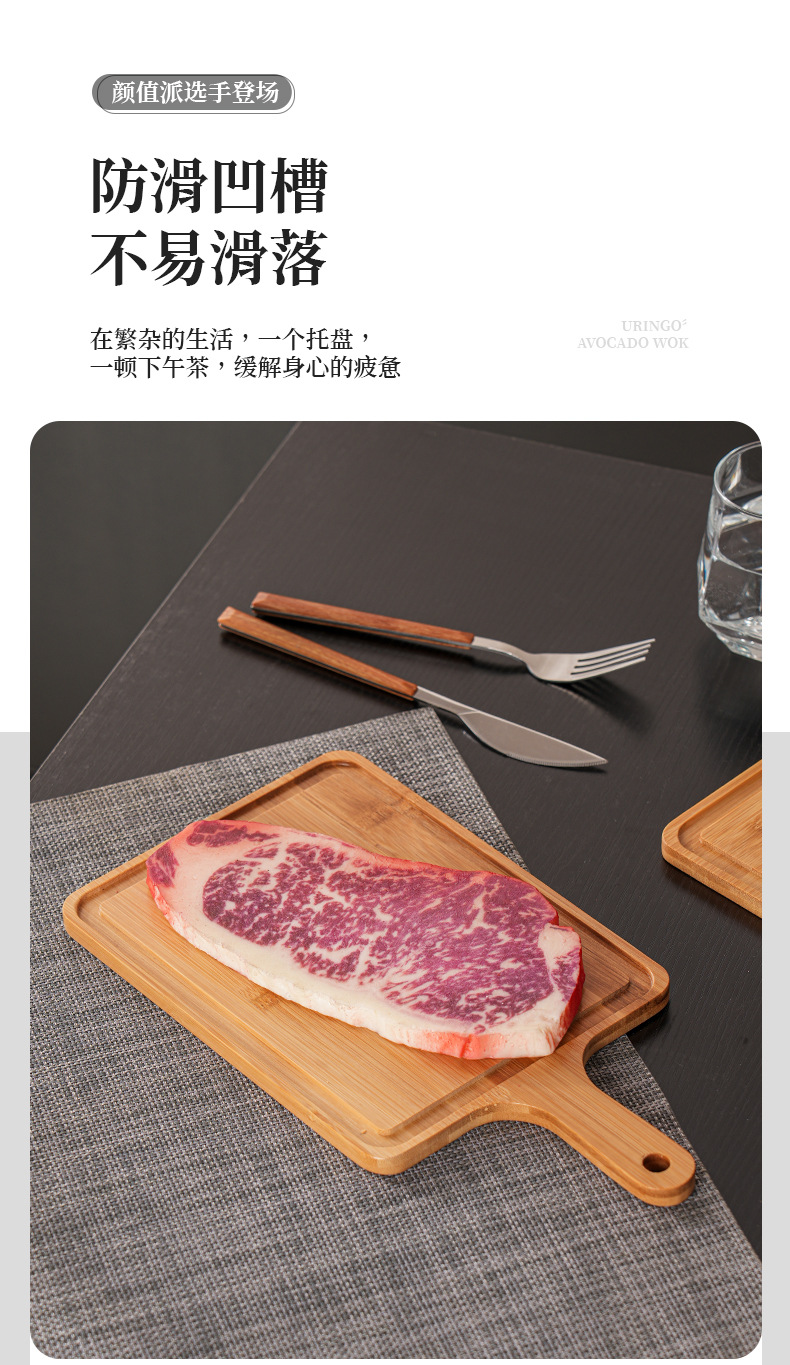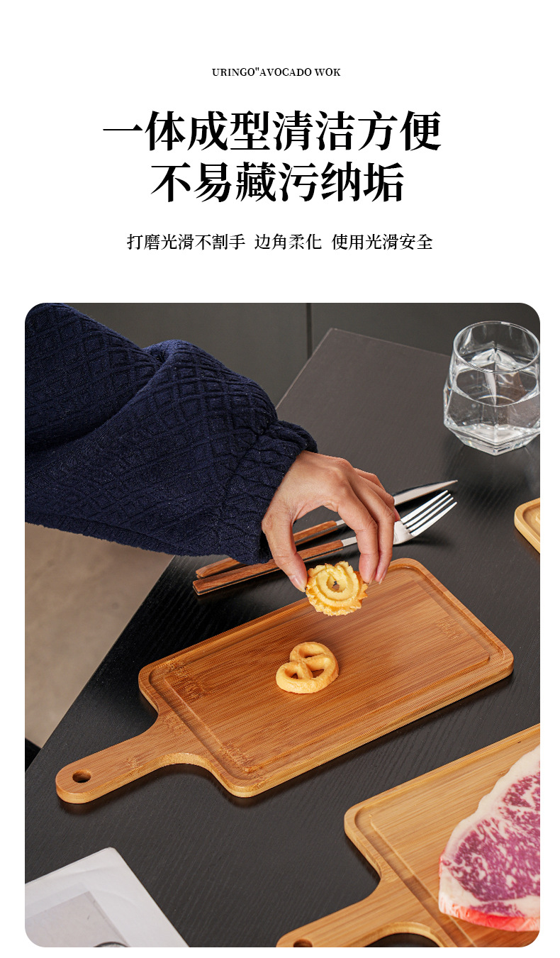 베이킹 나무 트레이 빵 베이스 상업용 스낵 대나무 제품 서양 스테이크 디스플레이 직사각형 손잡이 디너 플레이트