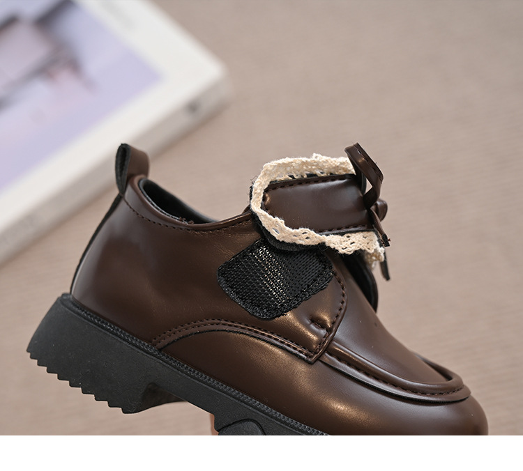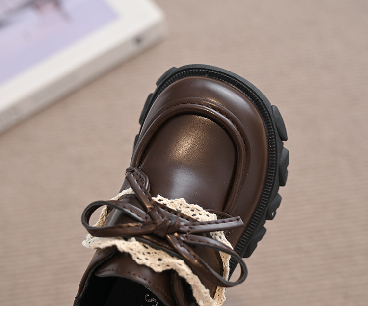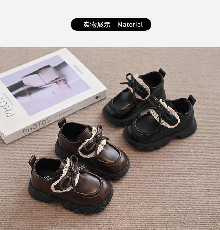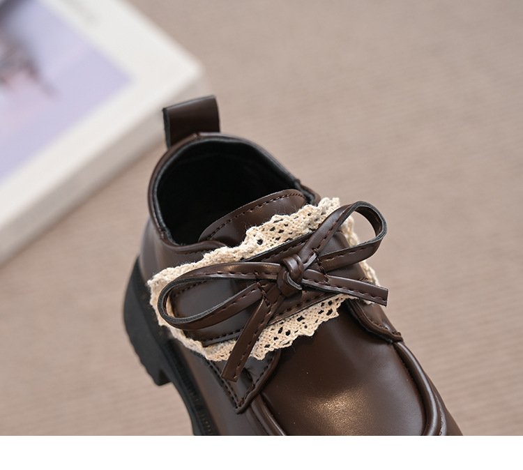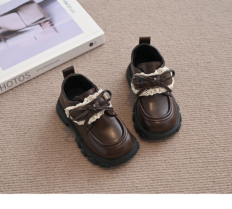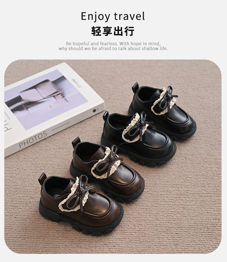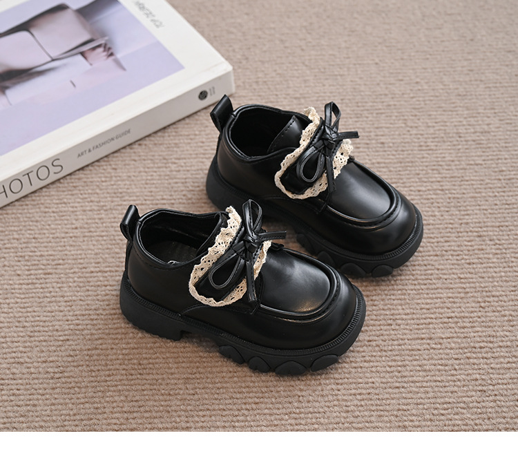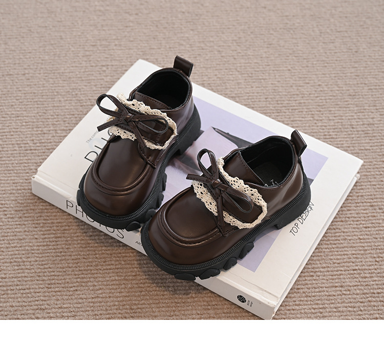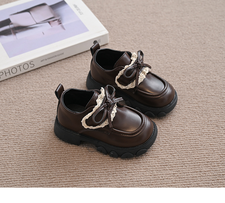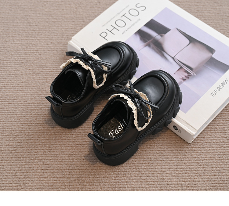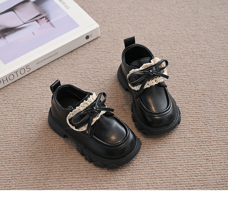 여자 나비 매듭 레이스 패션 공주 작은 가죽 신발 2025 봄 새로운 한국어 스타일 어린이 로퍼 두꺼운 밑창 신발스토어 가기