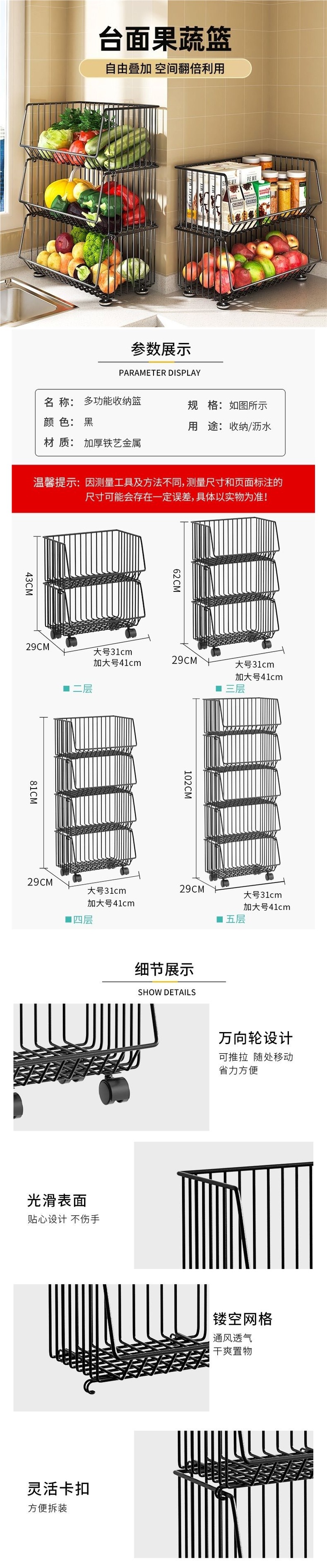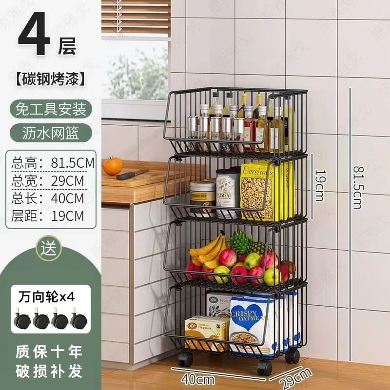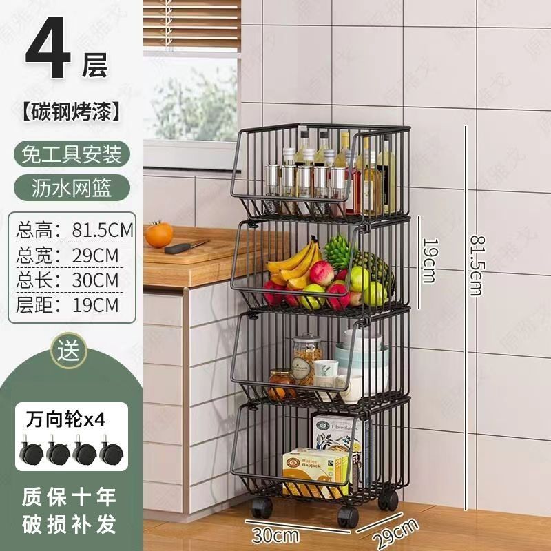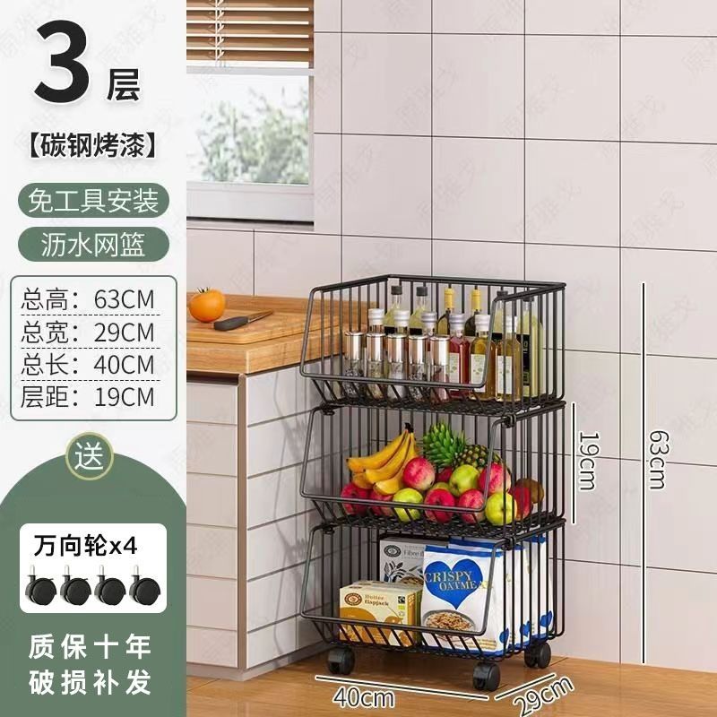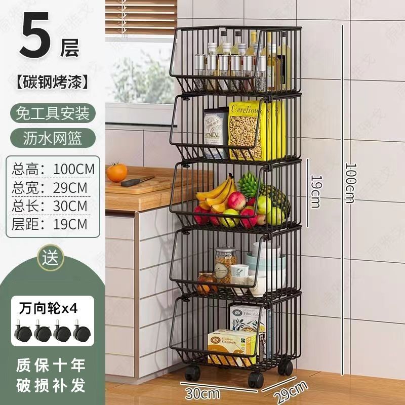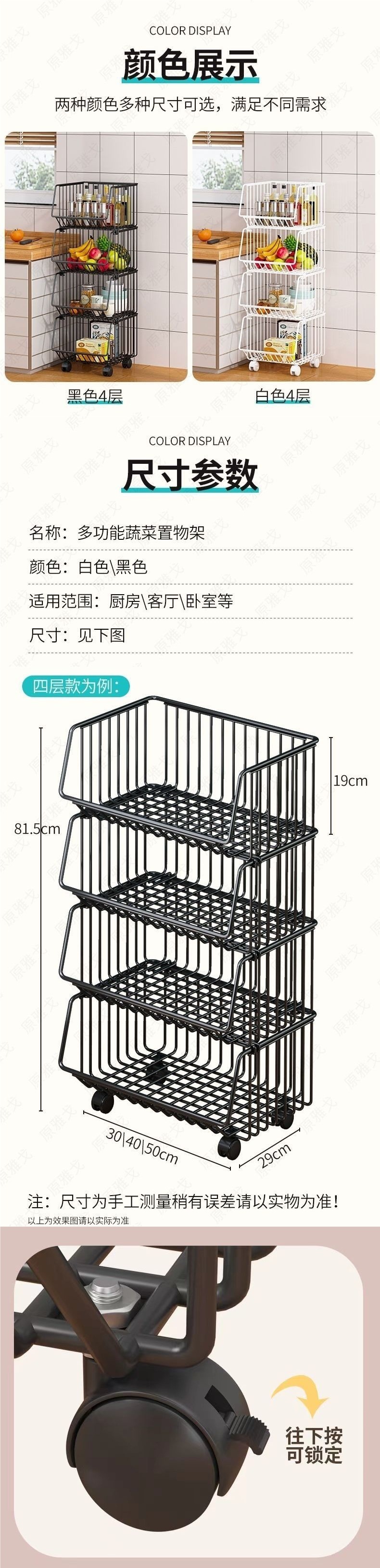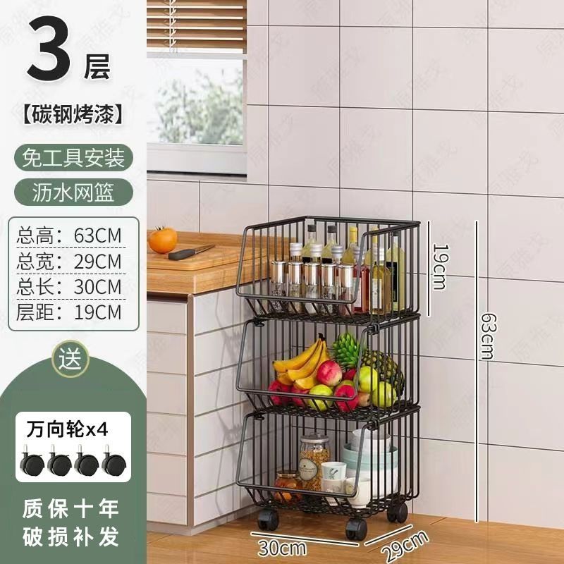 주방 야채 선반 보관함 가정용 다기능 야채 및 과일 스낵 보관함 도르래 이동 트롤리