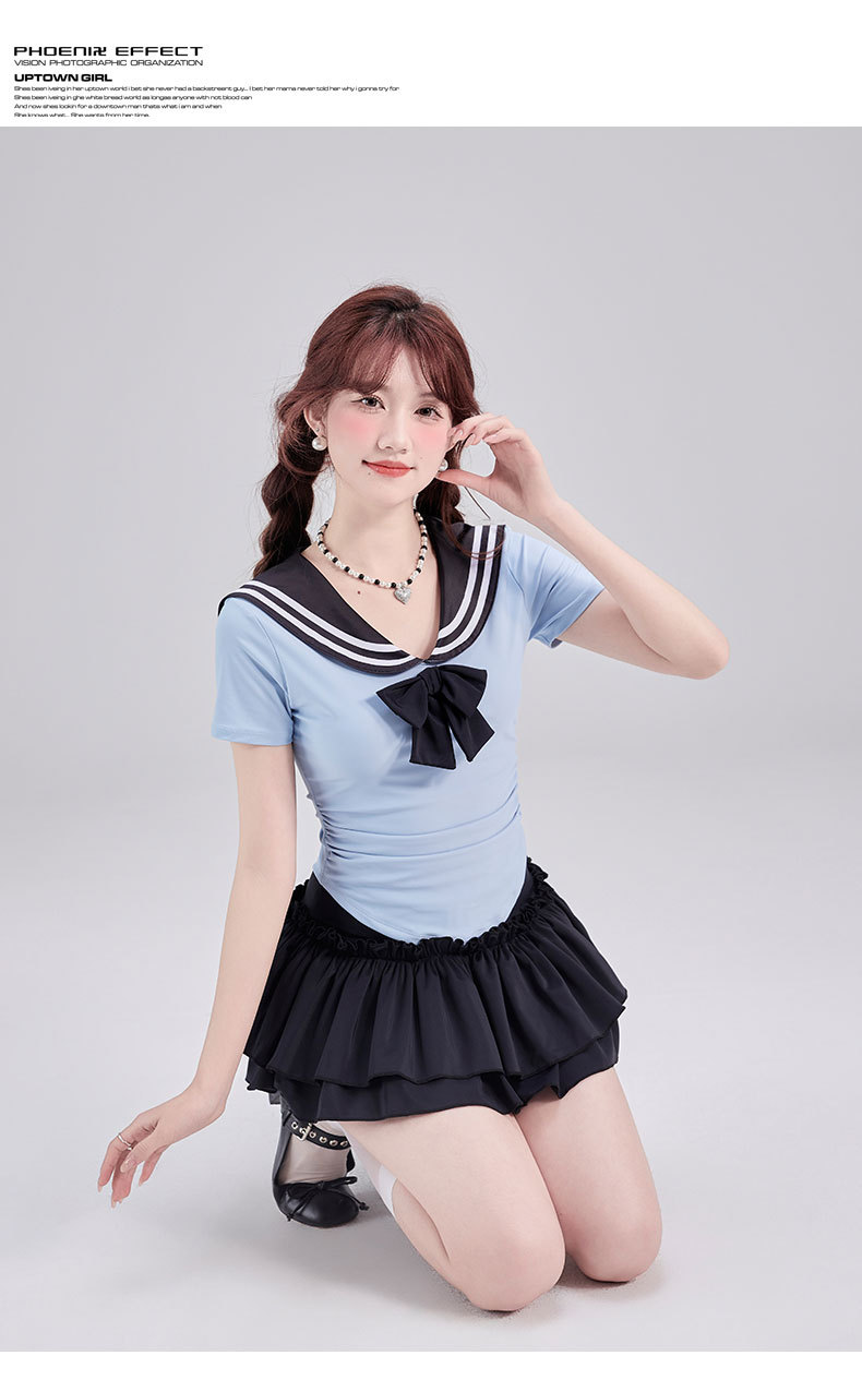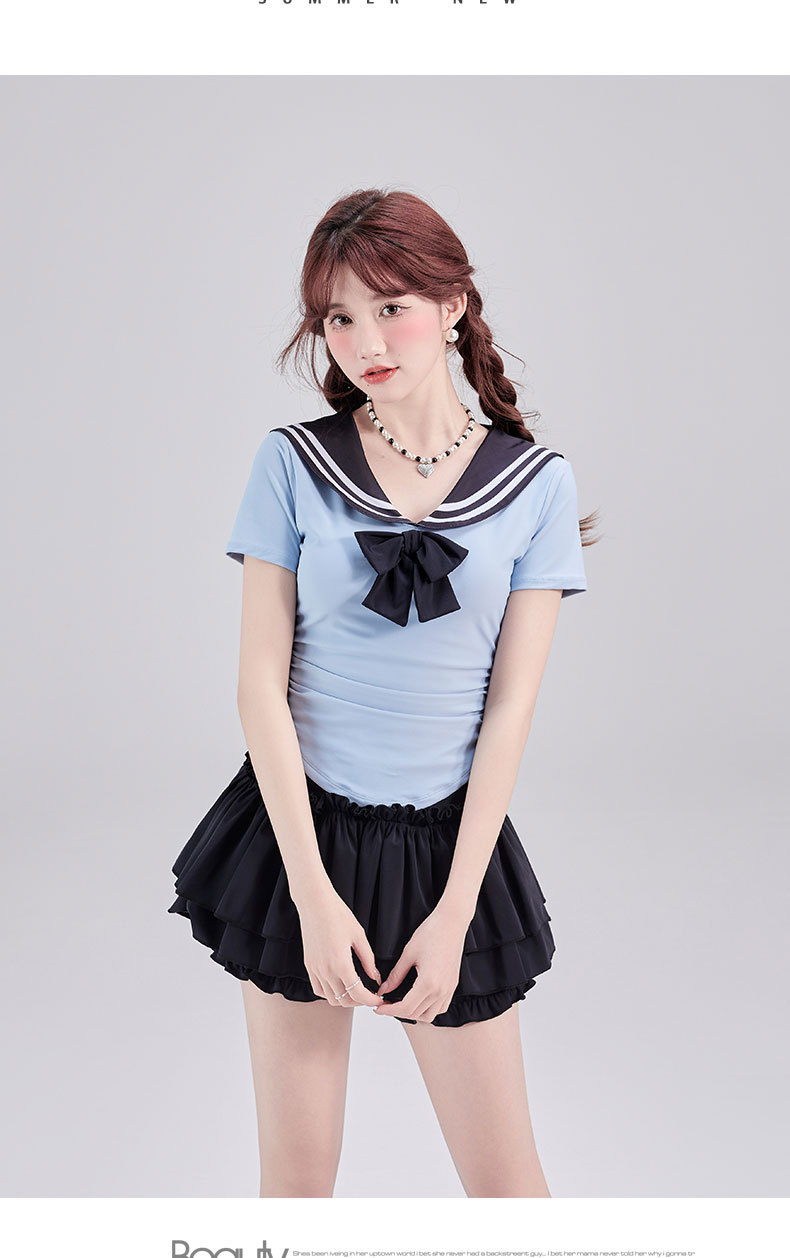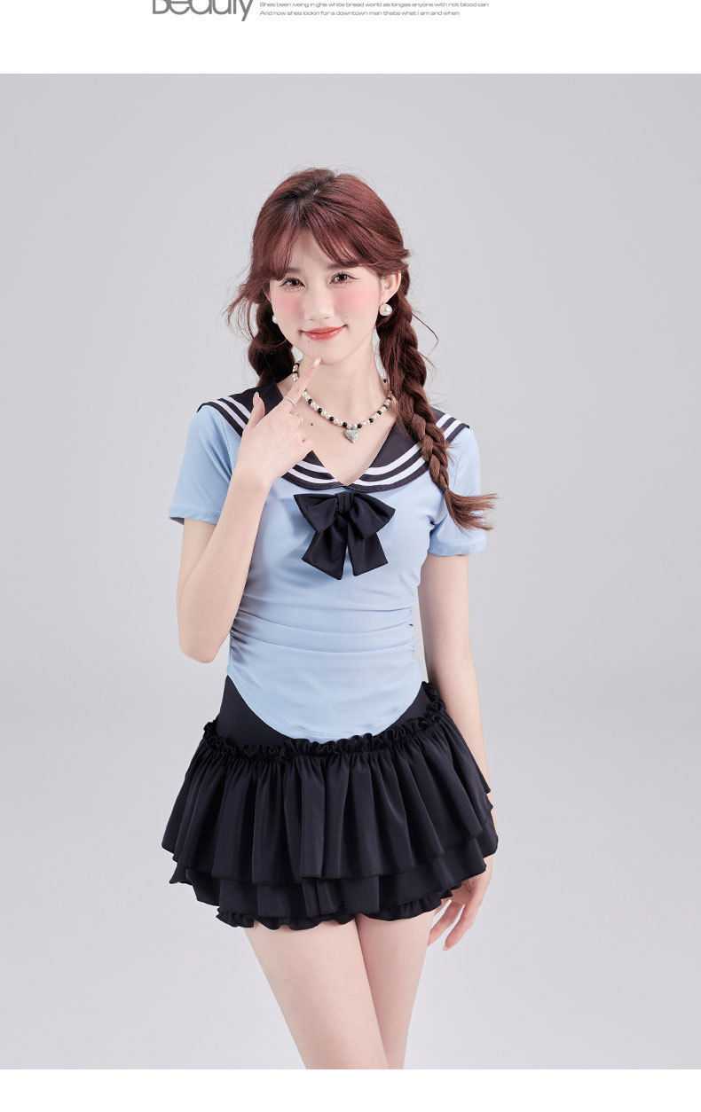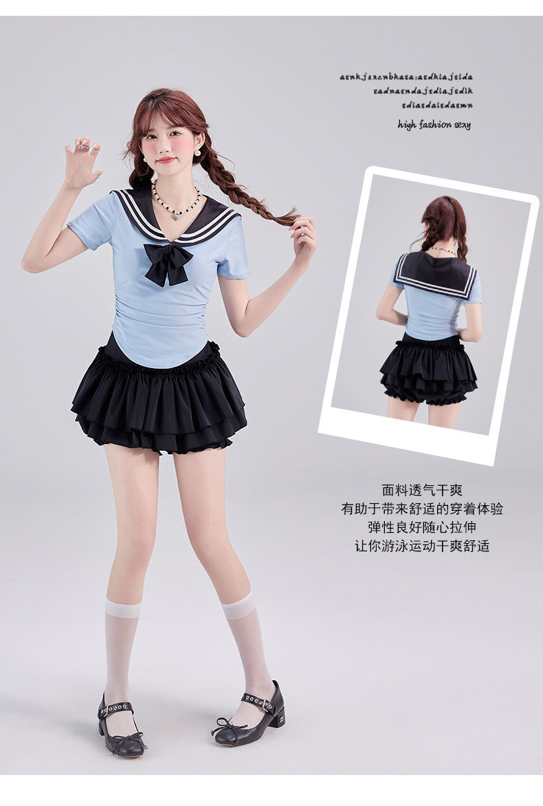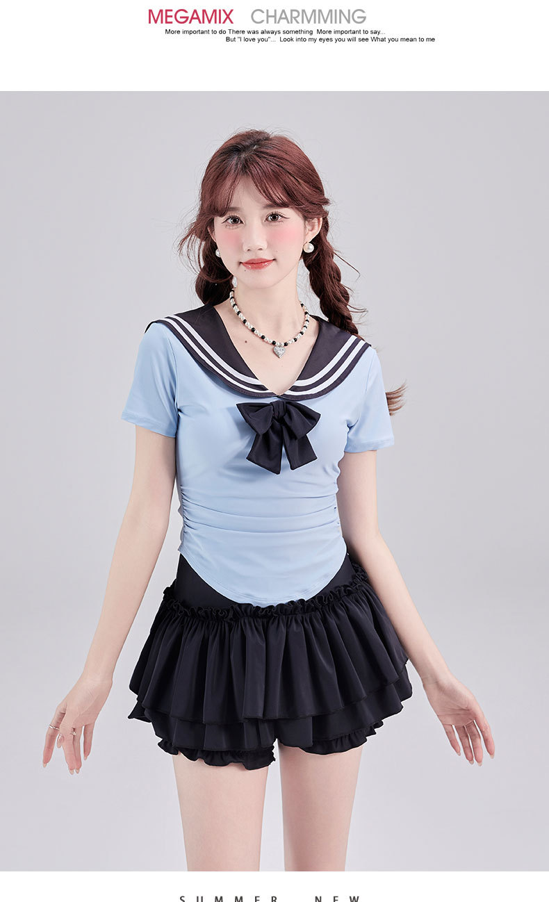 2025 새로운 대학 스타일 수영복 여성 순수한 욕망 해군 유니폼 기질 주름 치마 스타일 해변 해변 온천 수영복