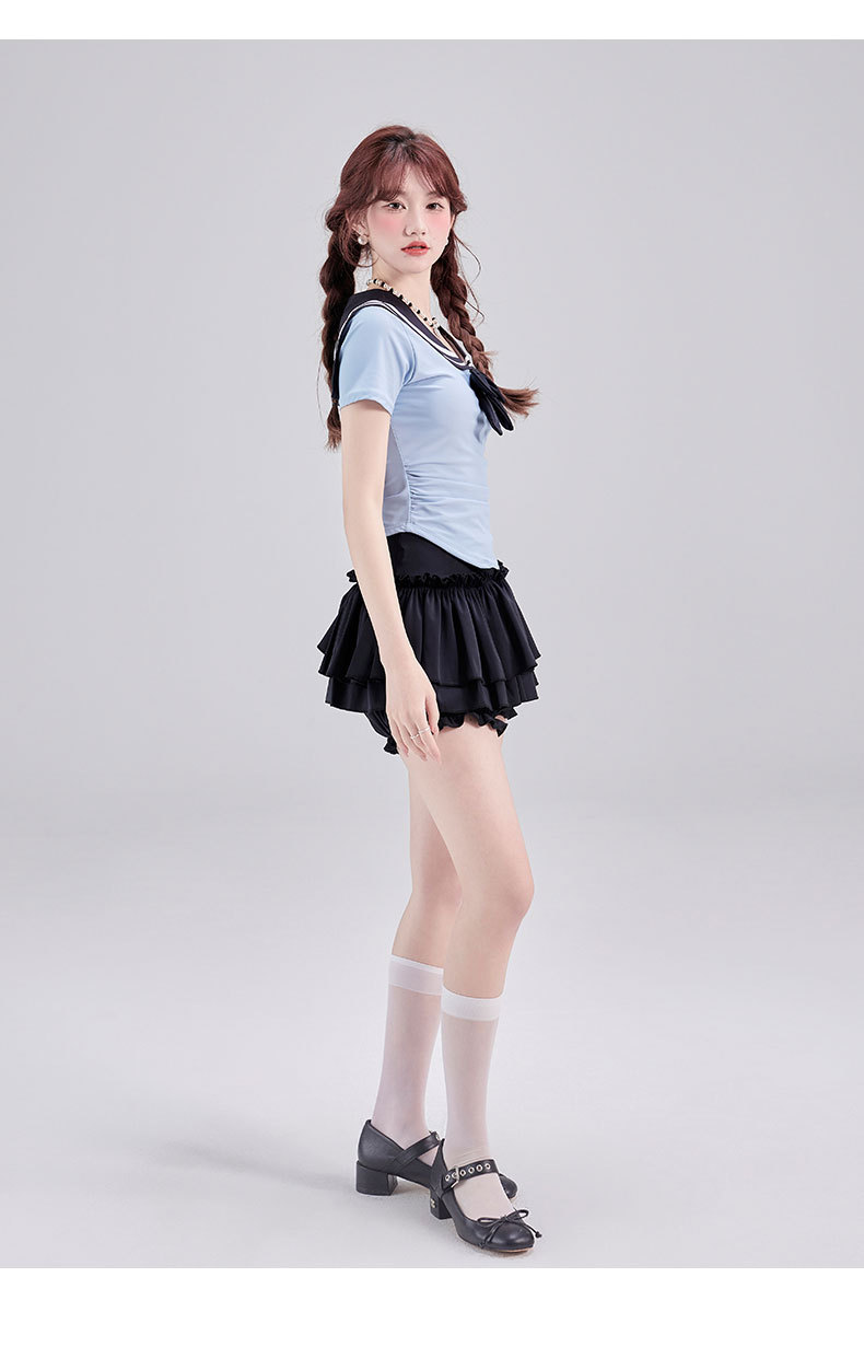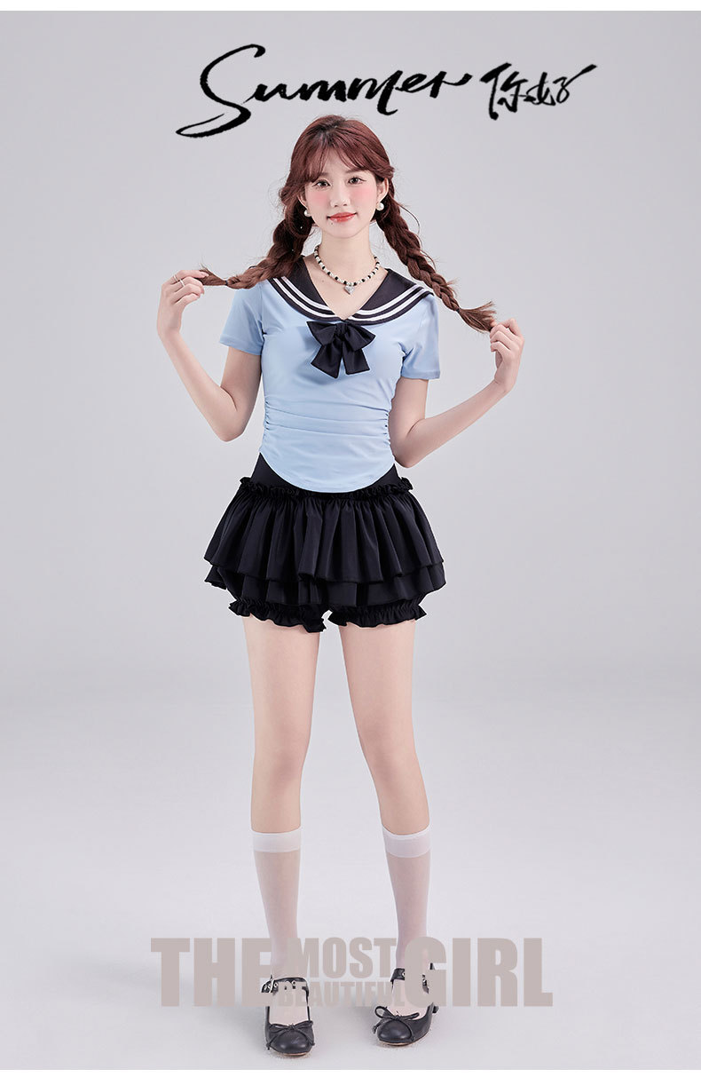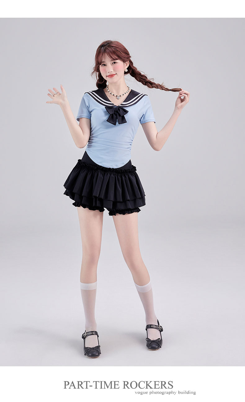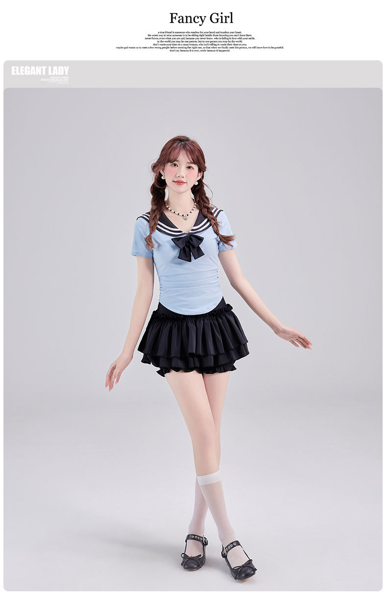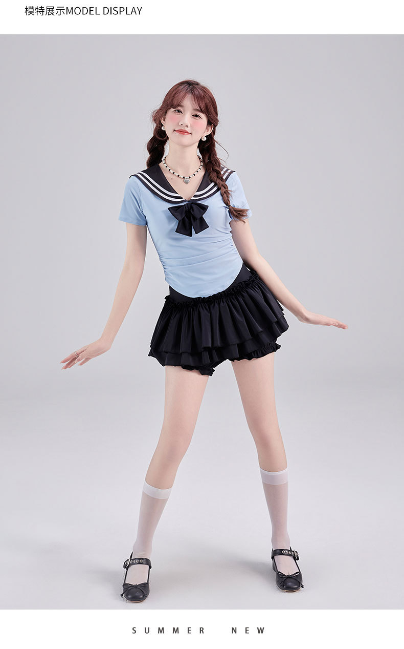 2025 새로운 대학 스타일 수영복 여성 순수한 욕망 해군 유니폼 기질 주름 치마 스타일 해변 해변 온천 수영복