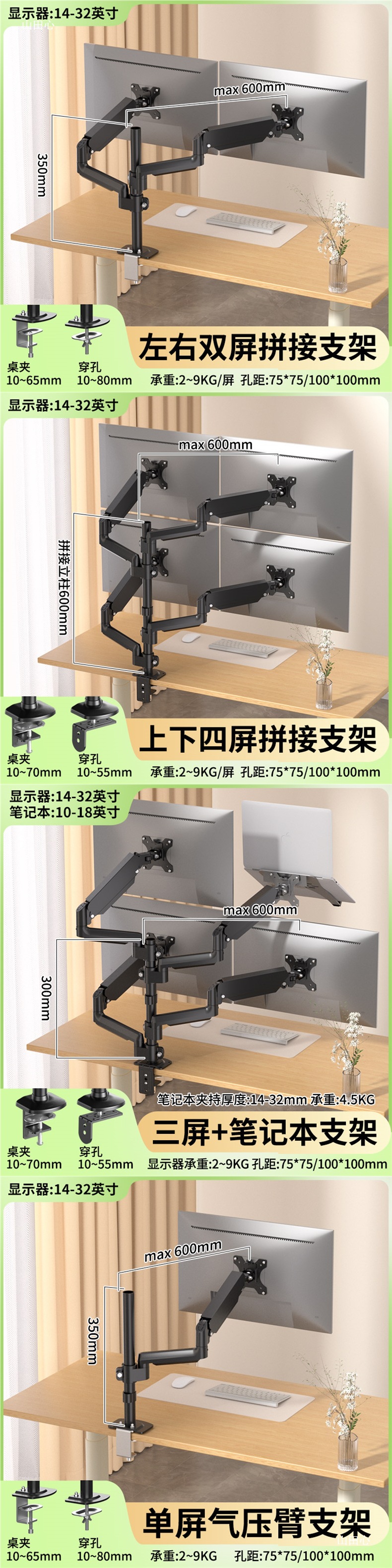 • 14-32inch 스크린 캔틸레버 1개 + 노트북 캔틸레버 1개 높이기