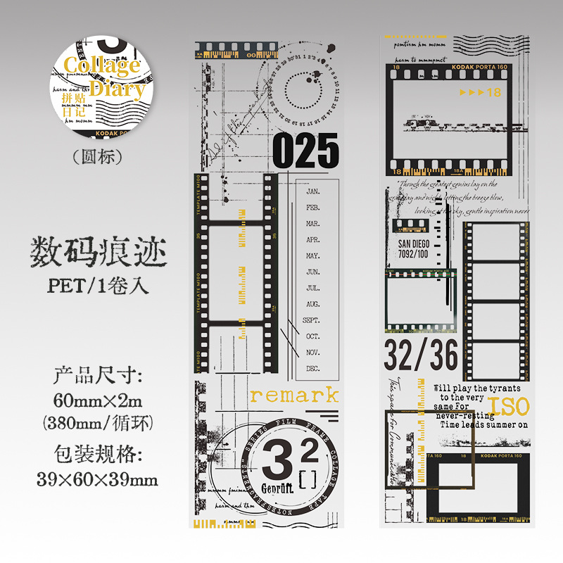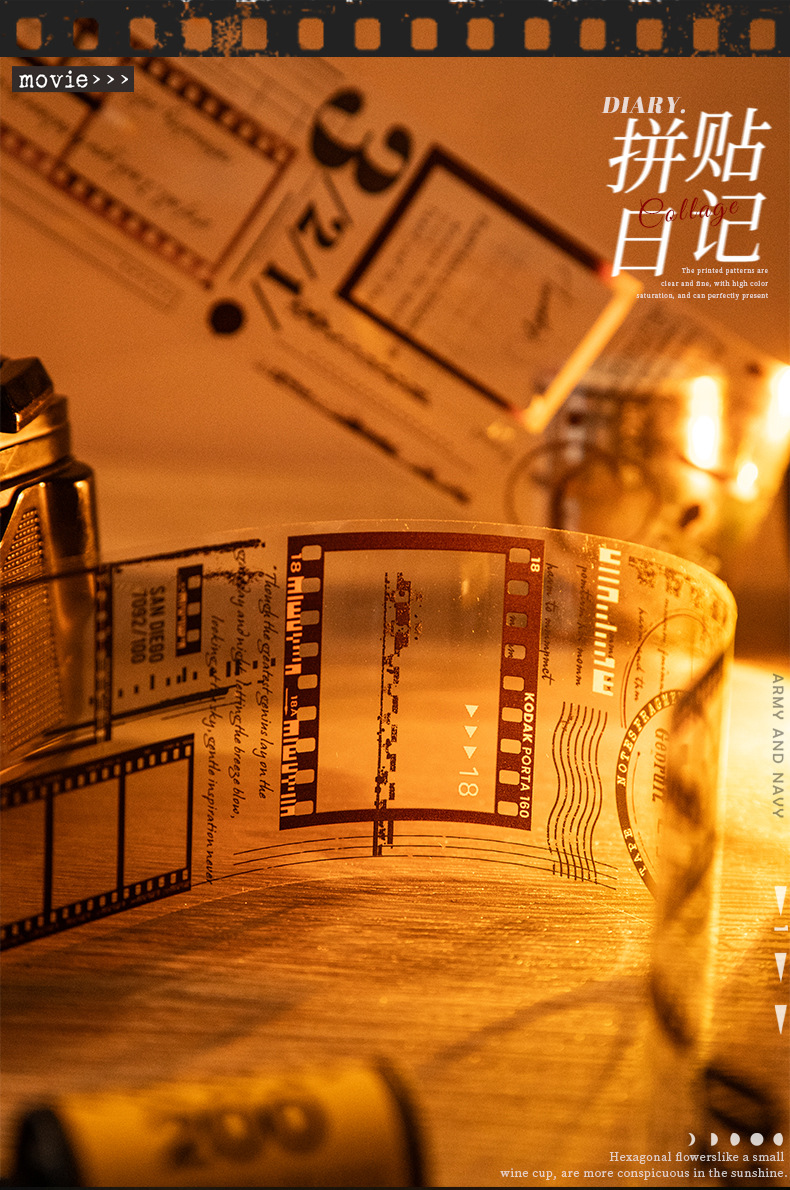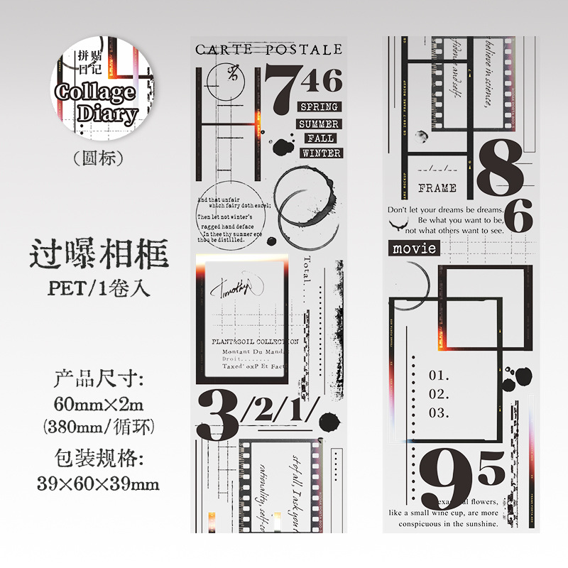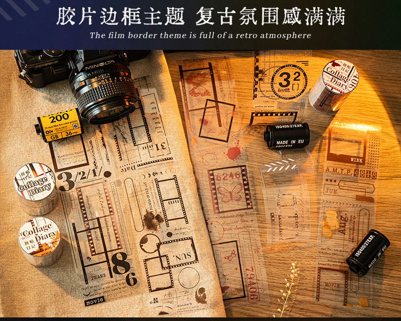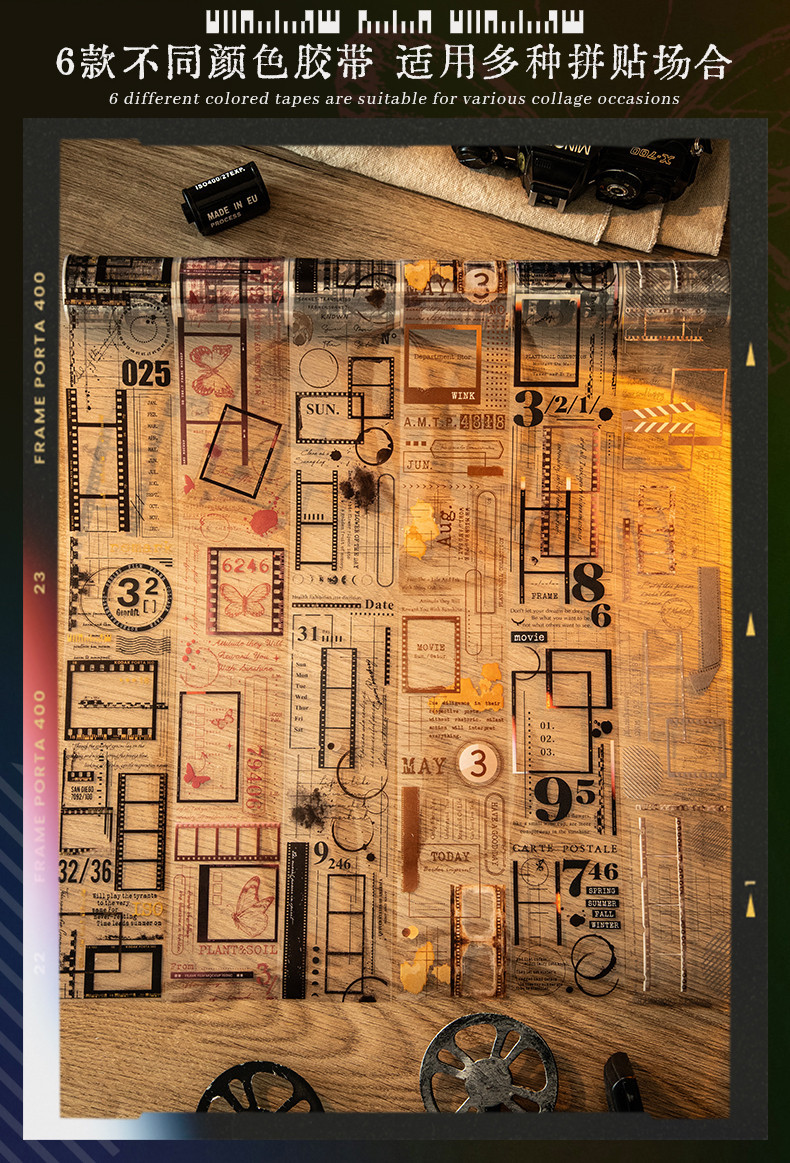 콜라주 일기 필름 테두리 PET 테이프 복고풍 흑백 영어 사진 프레임 필름 콜라주 핸드북 장식 재료