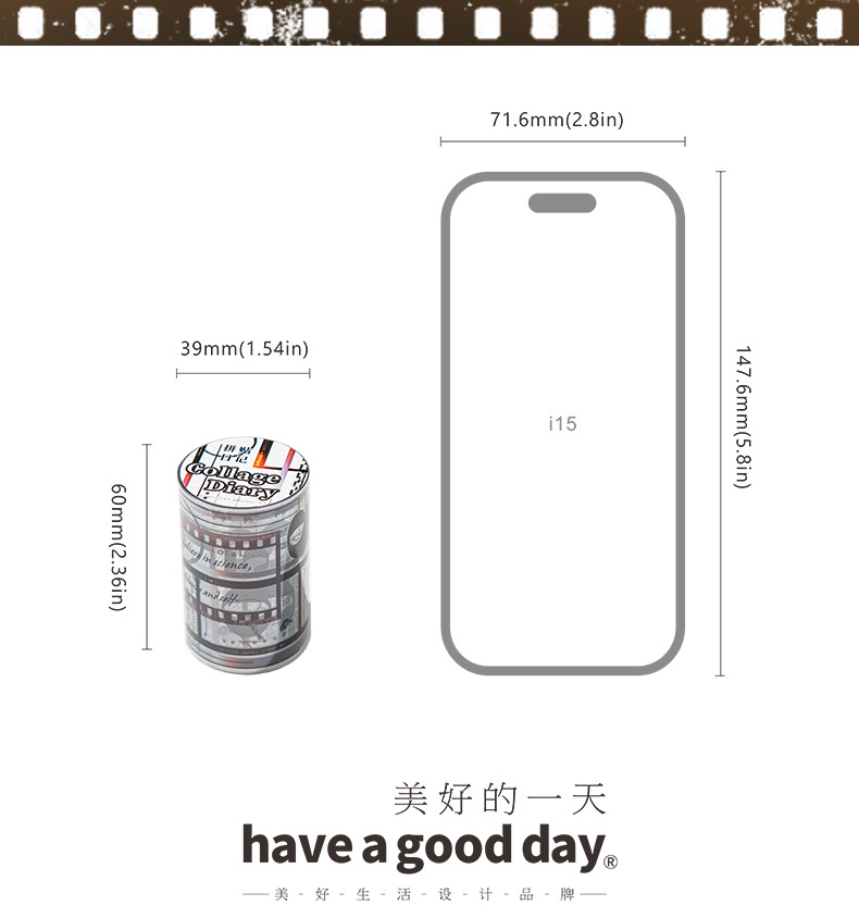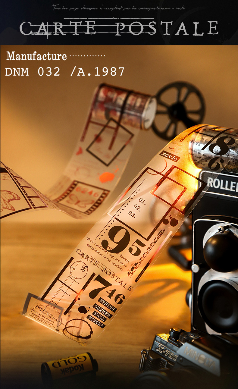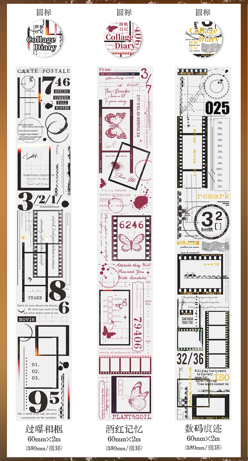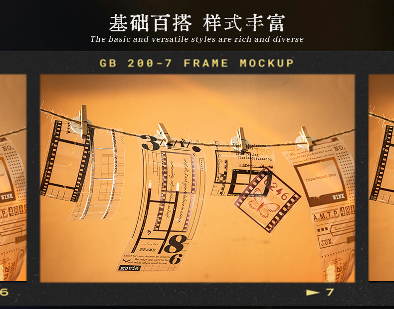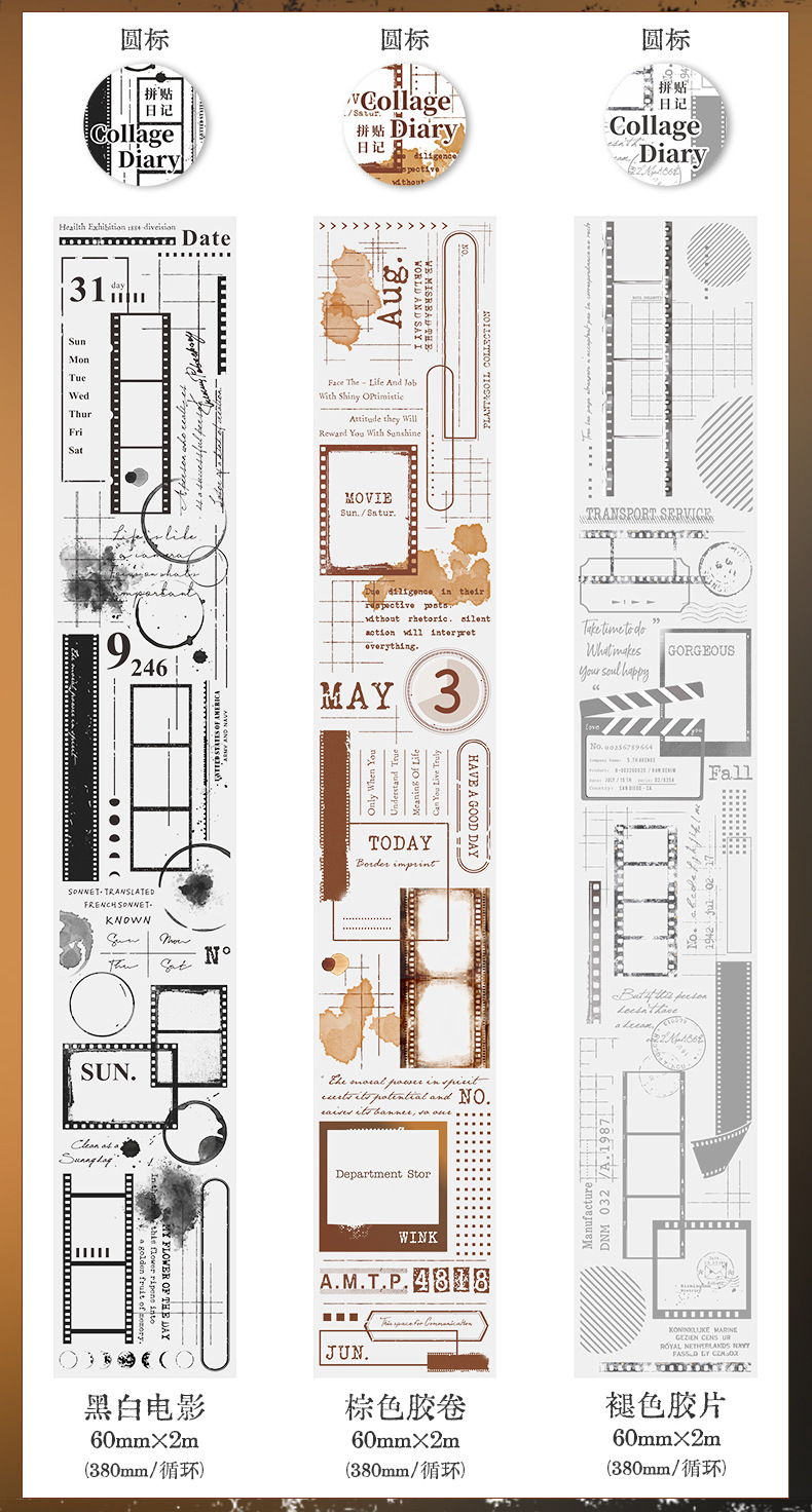 콜라주 일기 필름 테두리 PET 테이프 복고풍 흑백 영어 사진 프레임 필름 콜라주 핸드북 장식 재료